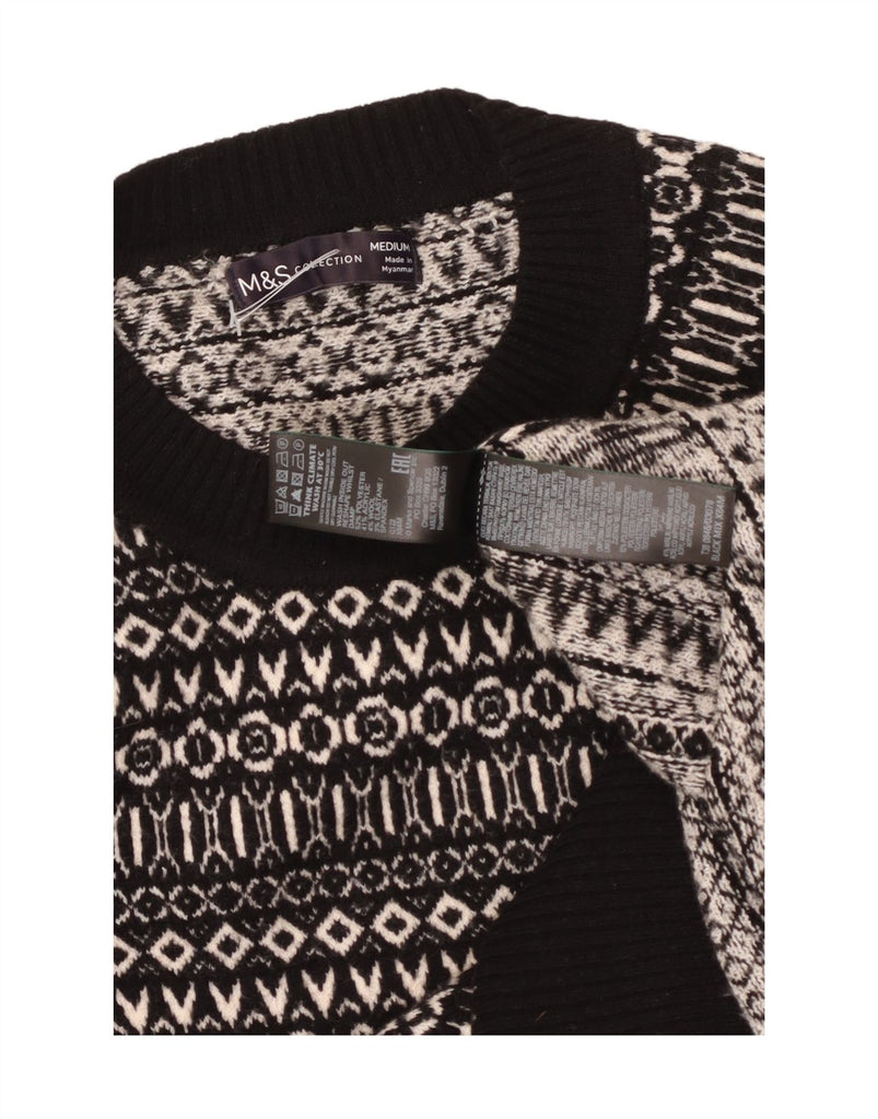 MARKS & SPENCER Mens Crew Neck Jumper Sweater Medium Black Fair Isle