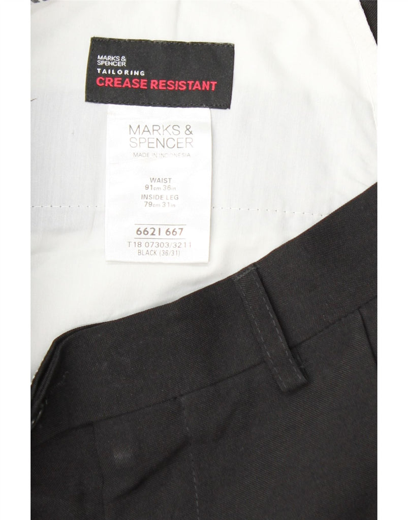 MARKS & SPENCER Mens Pegged Suit Trousers W36 L31 Black Polyester