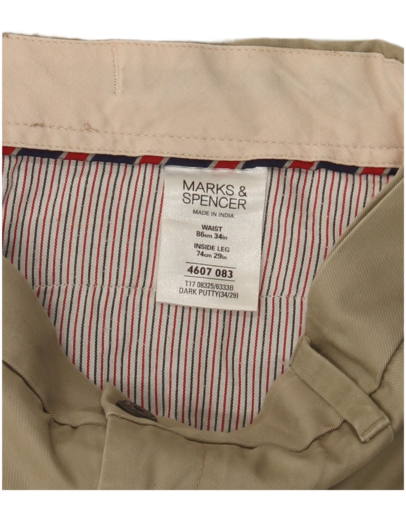 MARKS & SPENCER Mens Straight Chino Trousers W34 L29 Beige Cotton