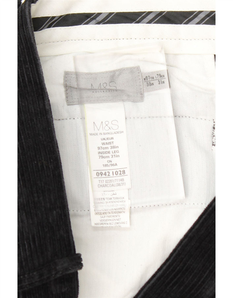 MARKS & SPENCER Mens Straight Corduroy Trousers W38 L31 Black Cotton