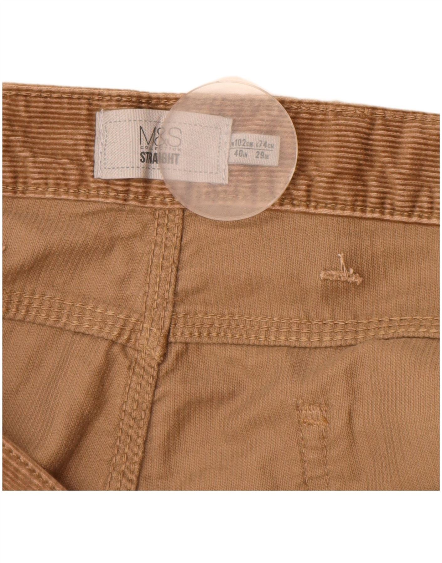 MARKS & SPENCER Mens Straight Corduroy Trousers W40 L29 Beige Cotton