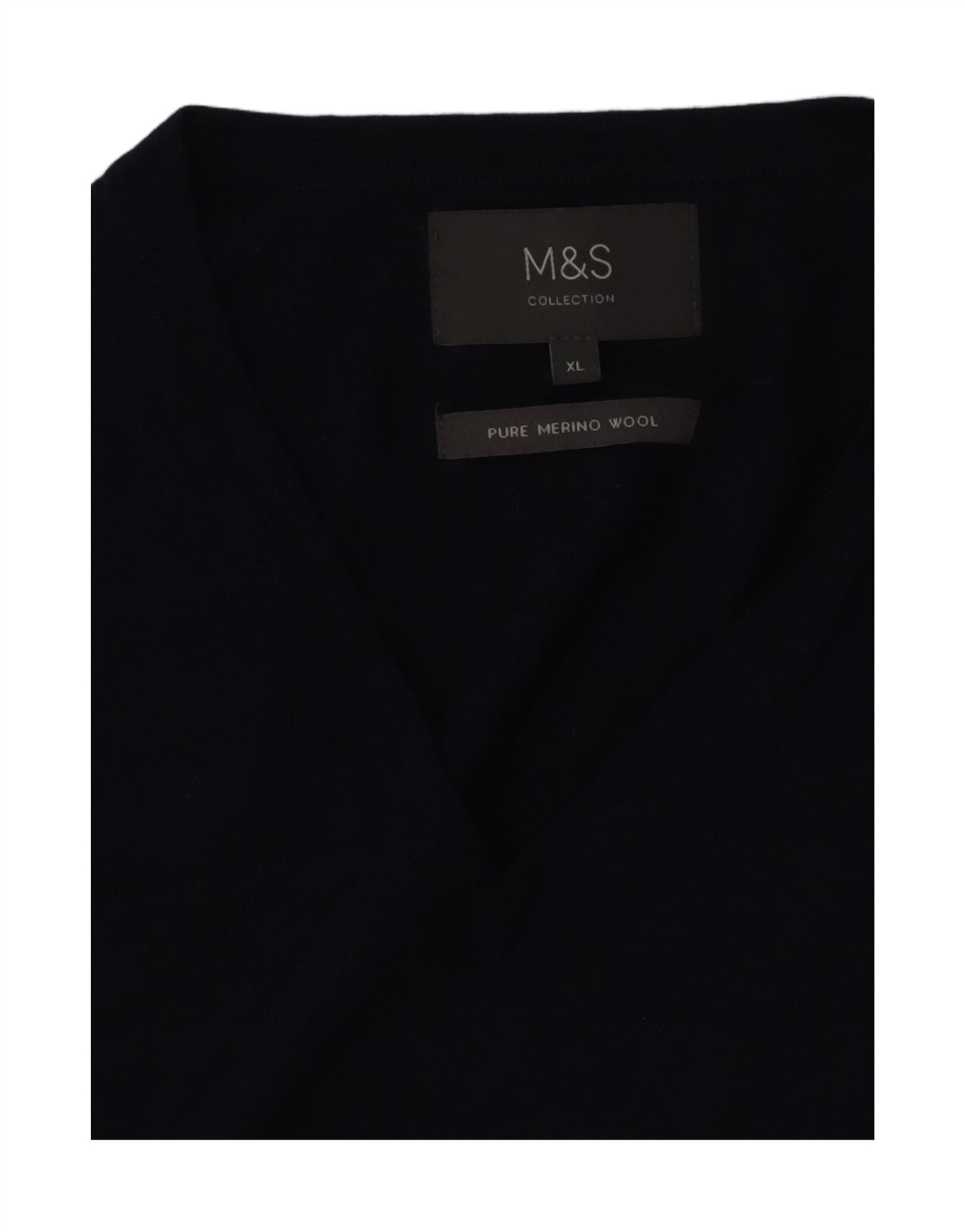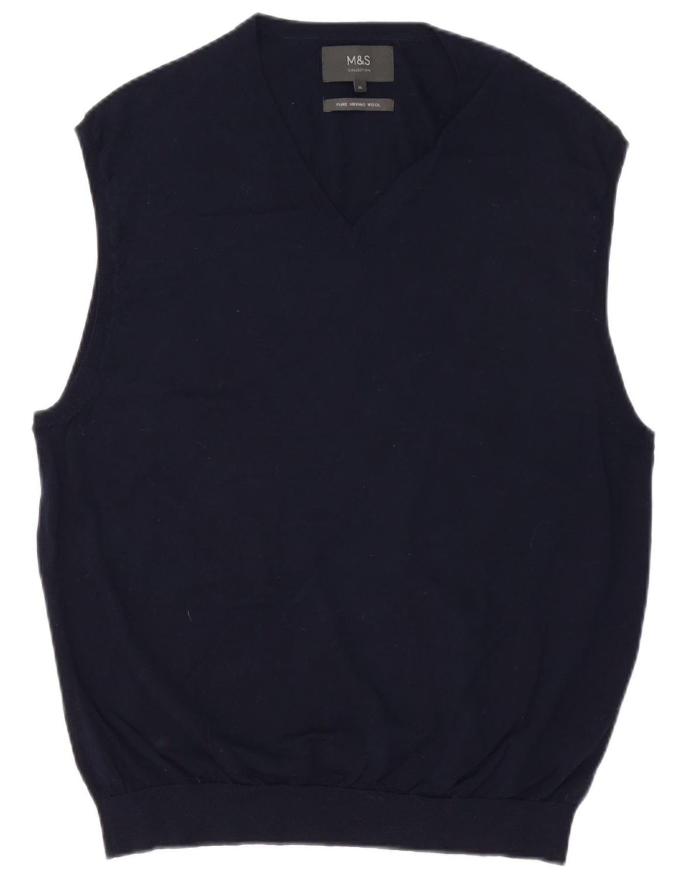 MARKS & SPENCER Mens Vest Tank Top XL Navy Blue Merino Wool