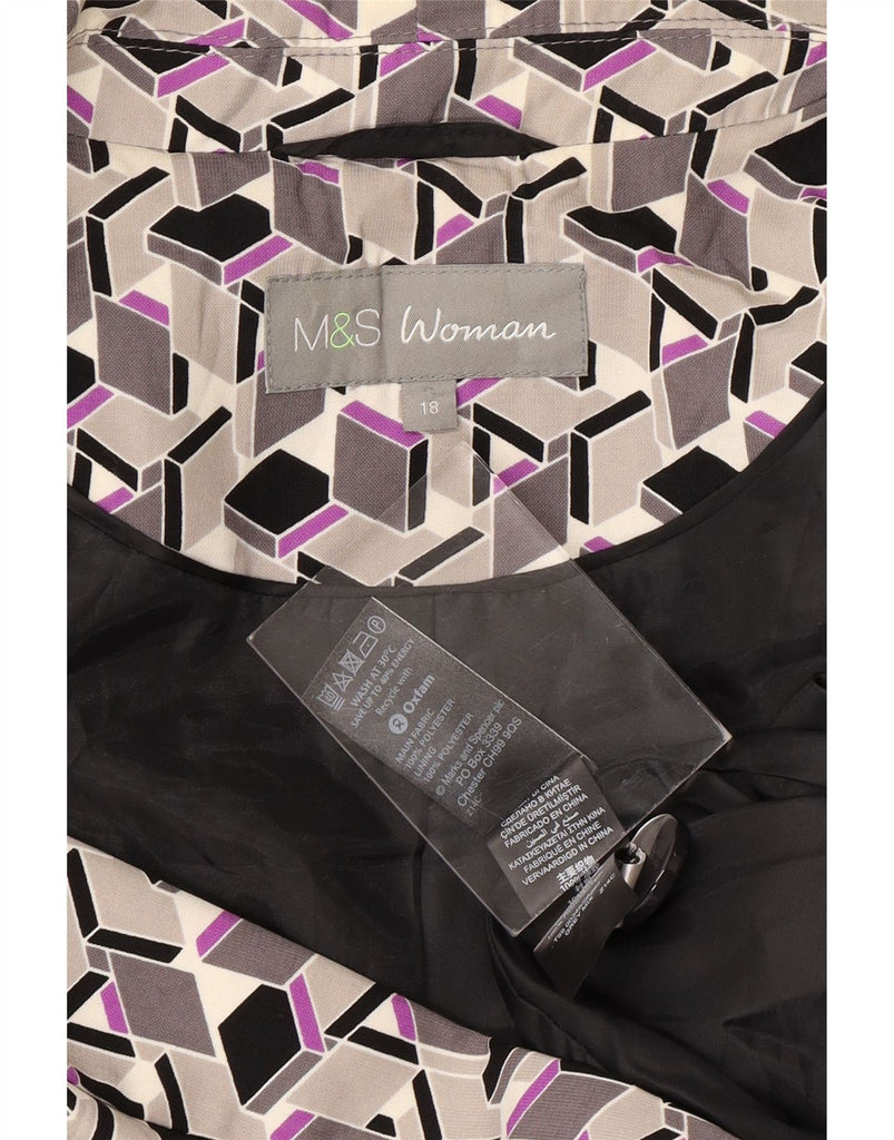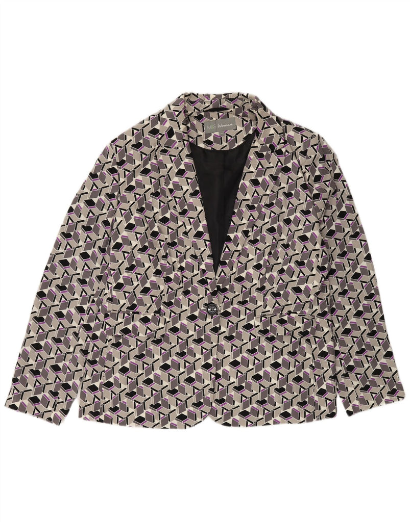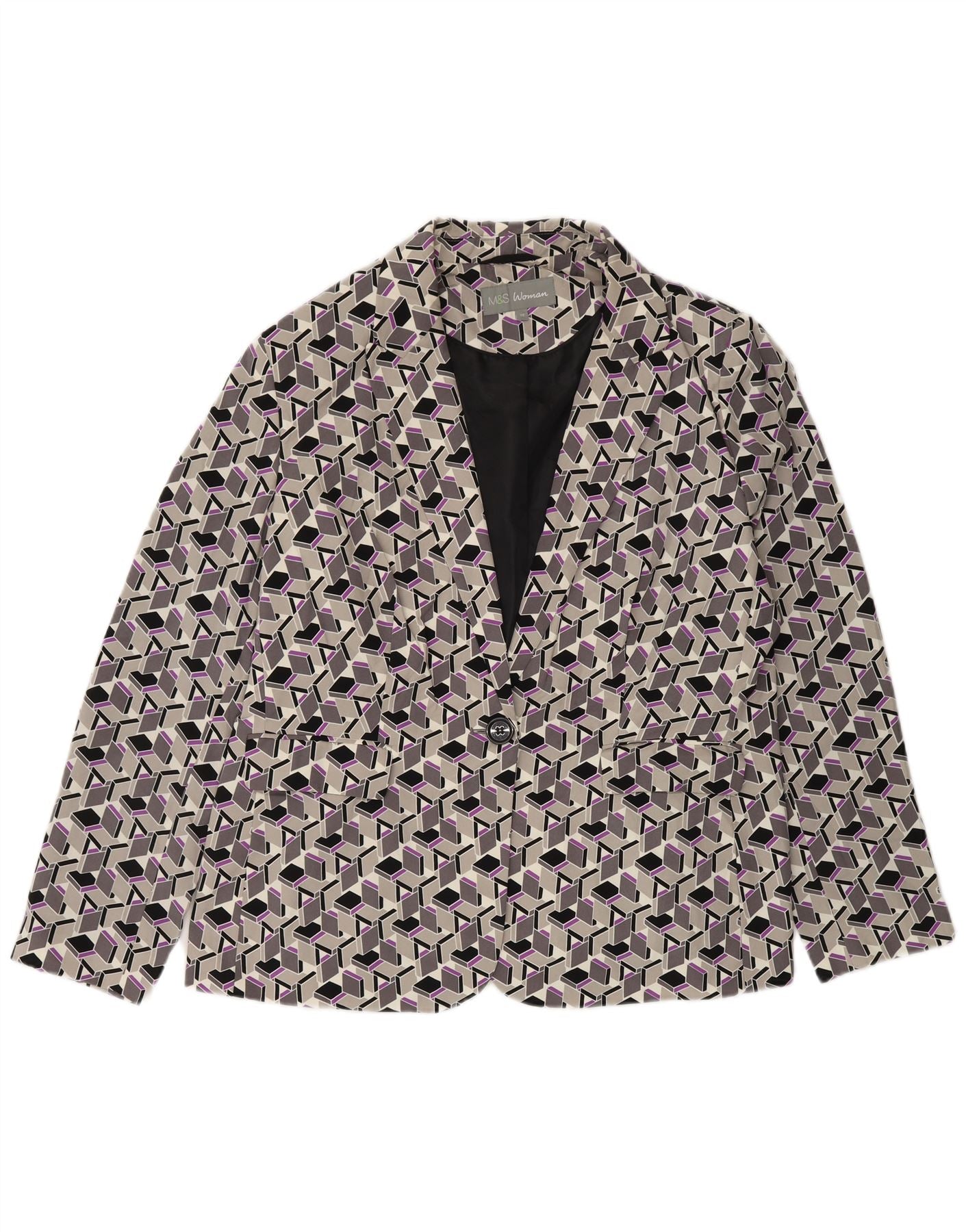 MARKS & SPENCER Womens 1 Button Blazer Jacket UK 18 XL Grey Geometric