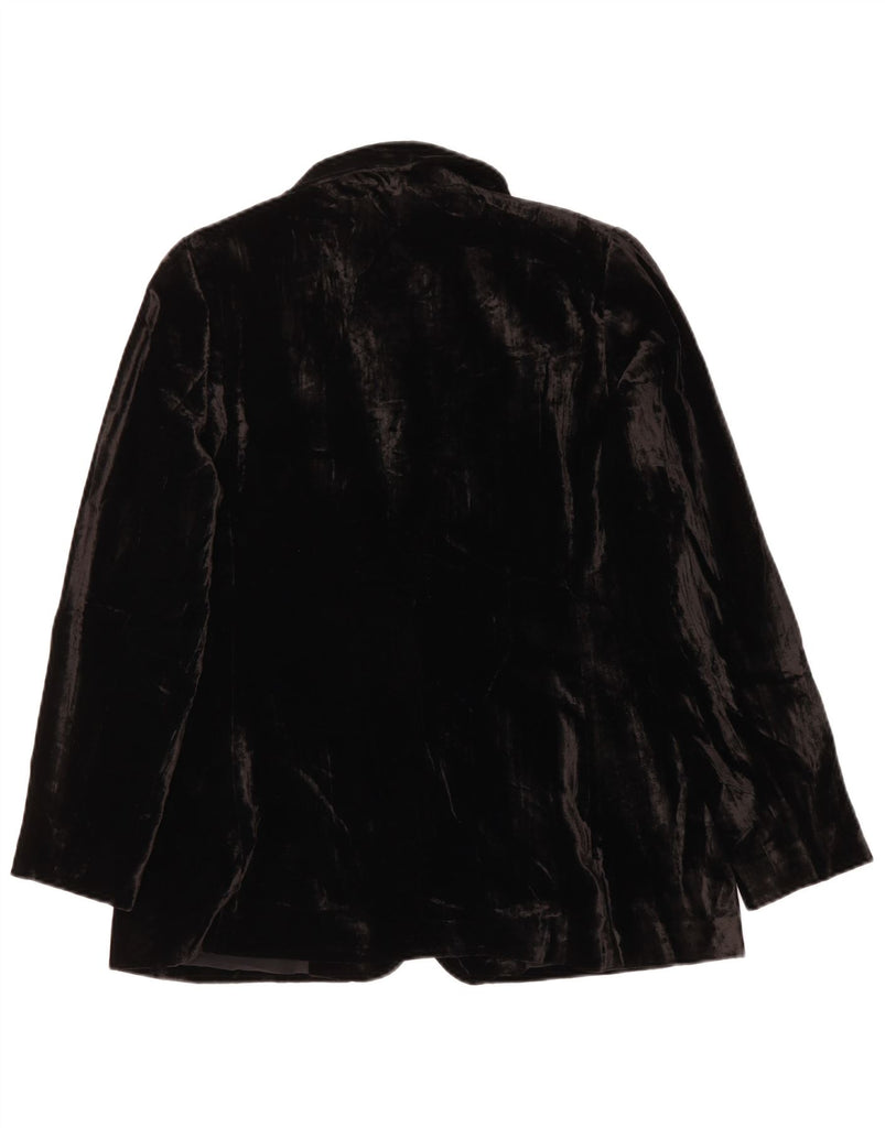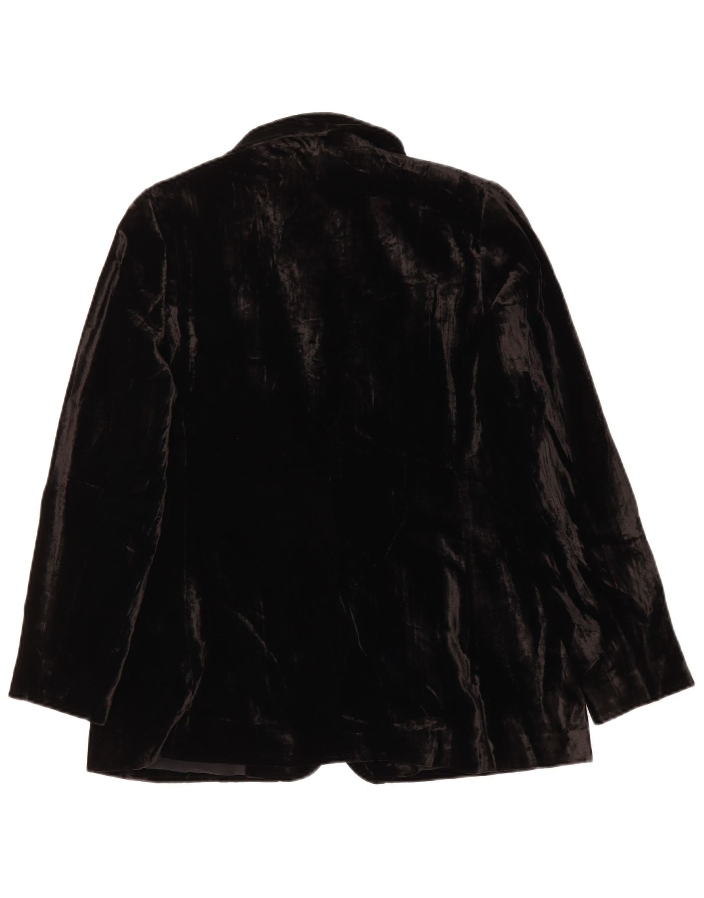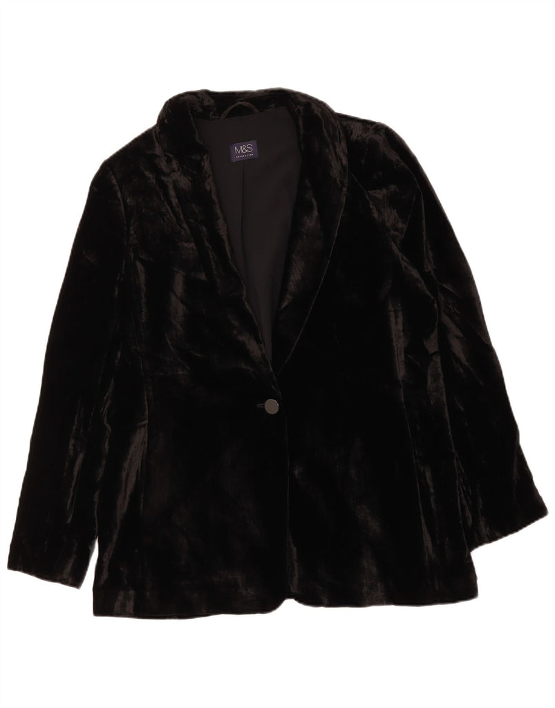MARKS & SPENCER Womens 1 Button Velour Blazer Jacket UK 14 Large Black