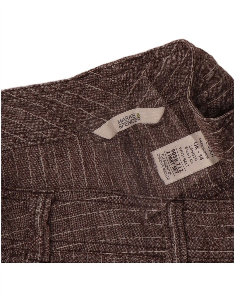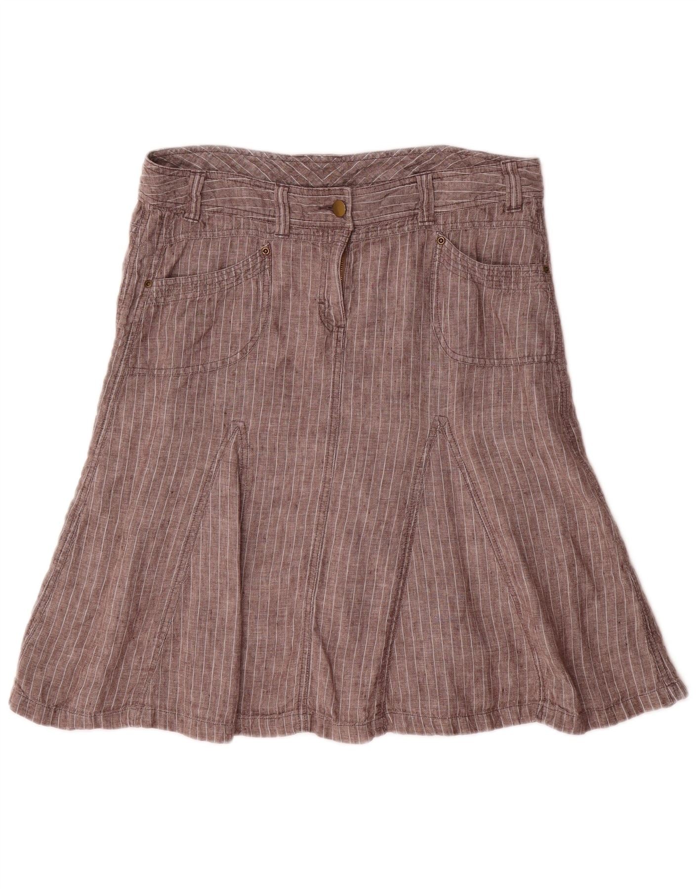 MARKS & SPENCER Womens A-Line Skirt UK 14 Large W36 Grey Striped Linen