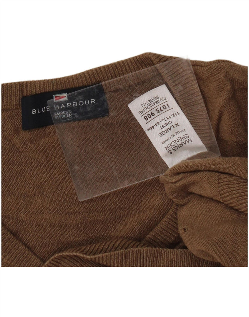 MARKS & SPENCER Womens Blue Harbour V-Neck Jumper Sweater UK 18 XL Brown