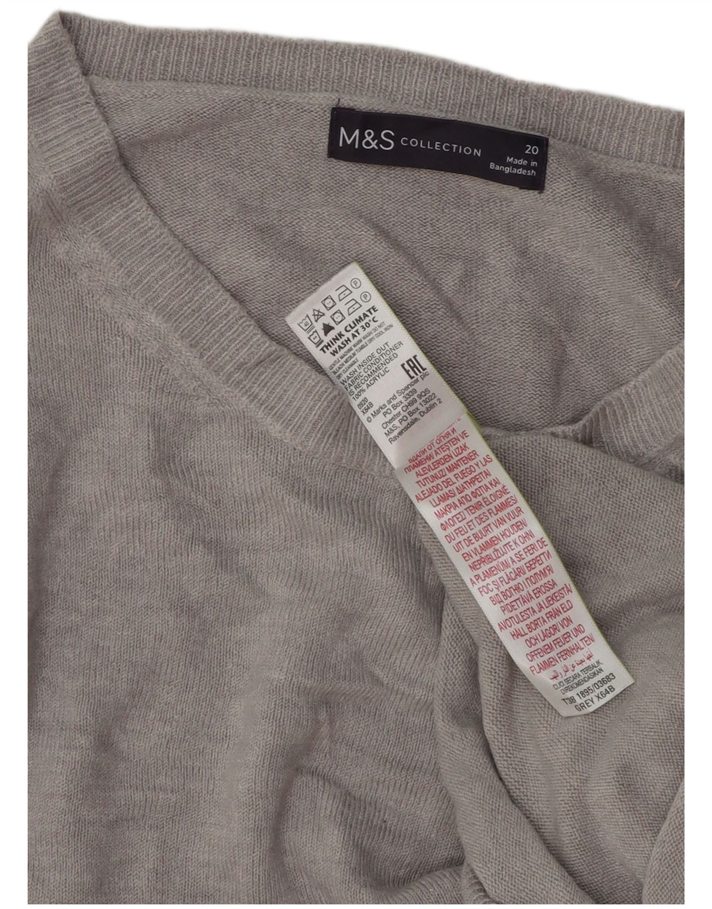 - AI Description: This Marks & Spencer womens crew neck jumper sweater is crafted from soft grey acrylic knit. It features a classic round neckline and long sleeves. The pullover design offers a comfortable regular fit. The fine knit texture provides subtle visual interest. This versatile piece is perfect for everyday wear.
