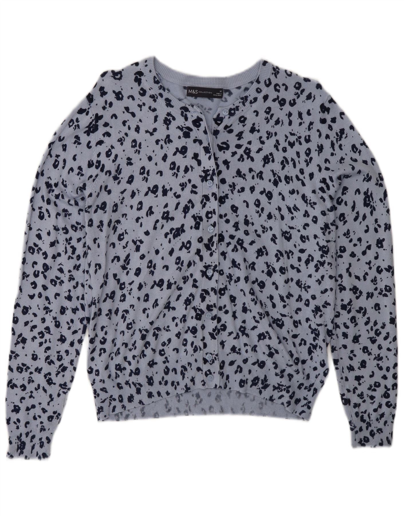 MARKS & SPENCER Womens Cardigan Sweater UK 14 Medium Blue Animal Print