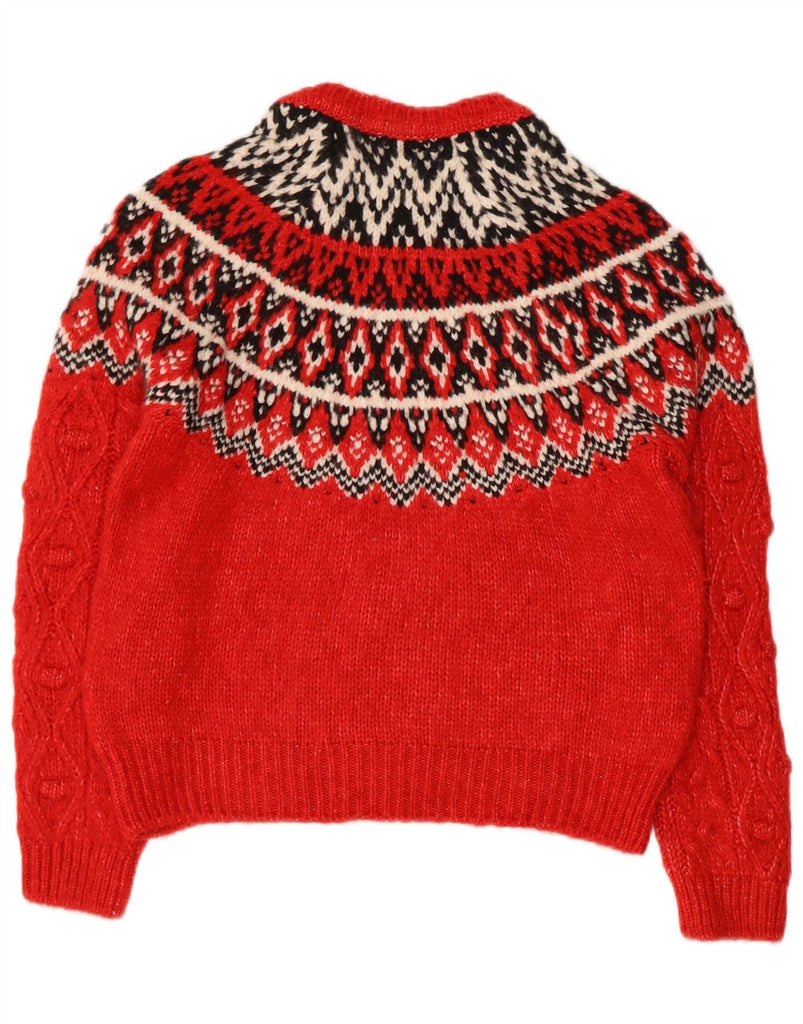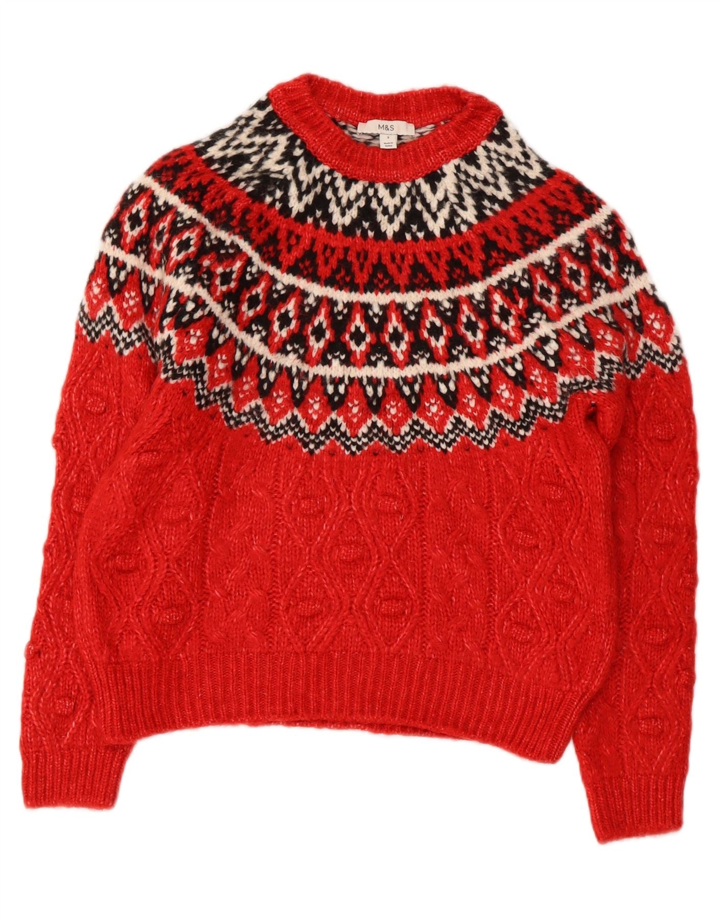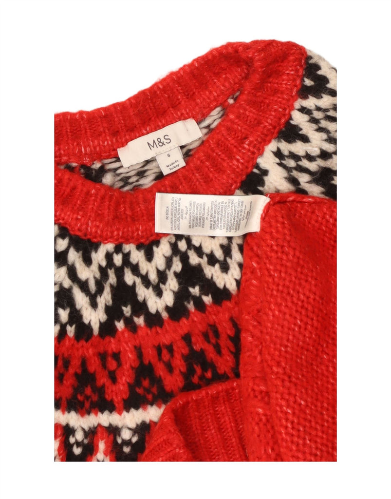 MARKS & SPENCER Womens Crew Neck Jumper Sweater UK 10 Small Red Fair Isle