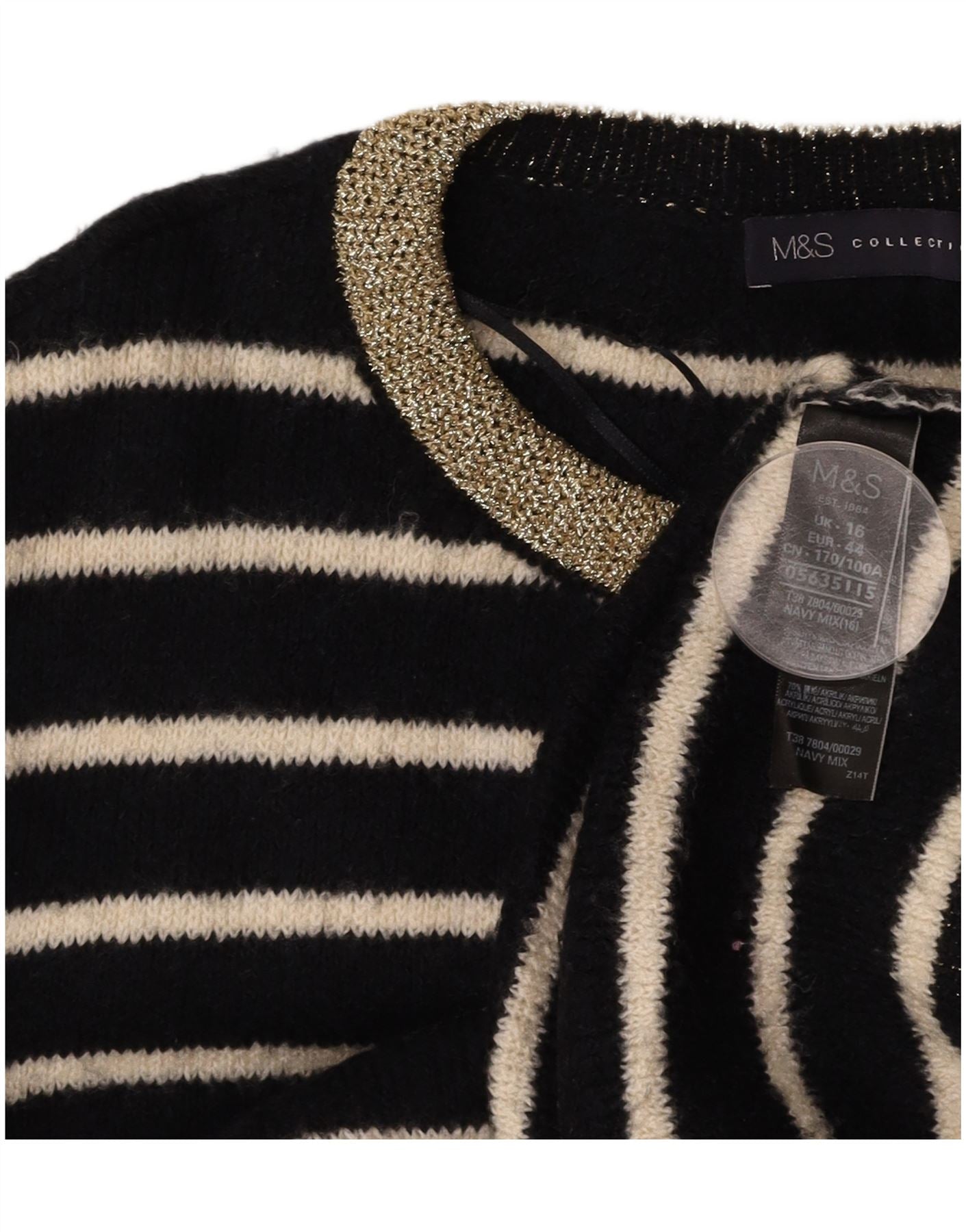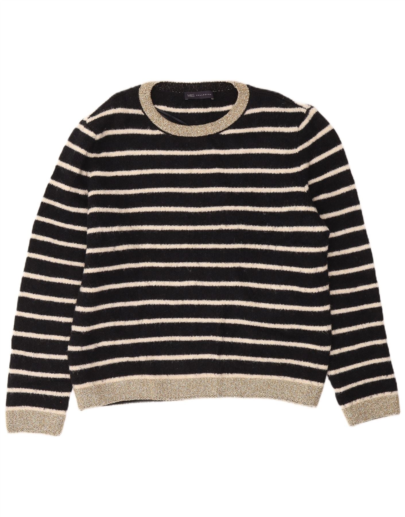 MARKS & SPENCER Womens Crew Neck Jumper Sweater UK 16 Large Black Striped