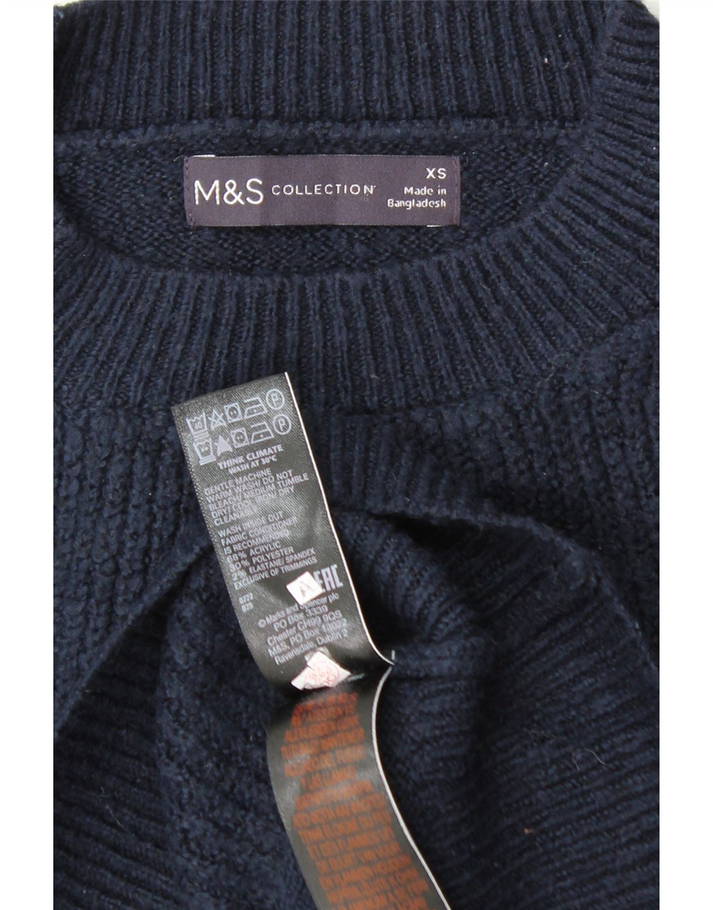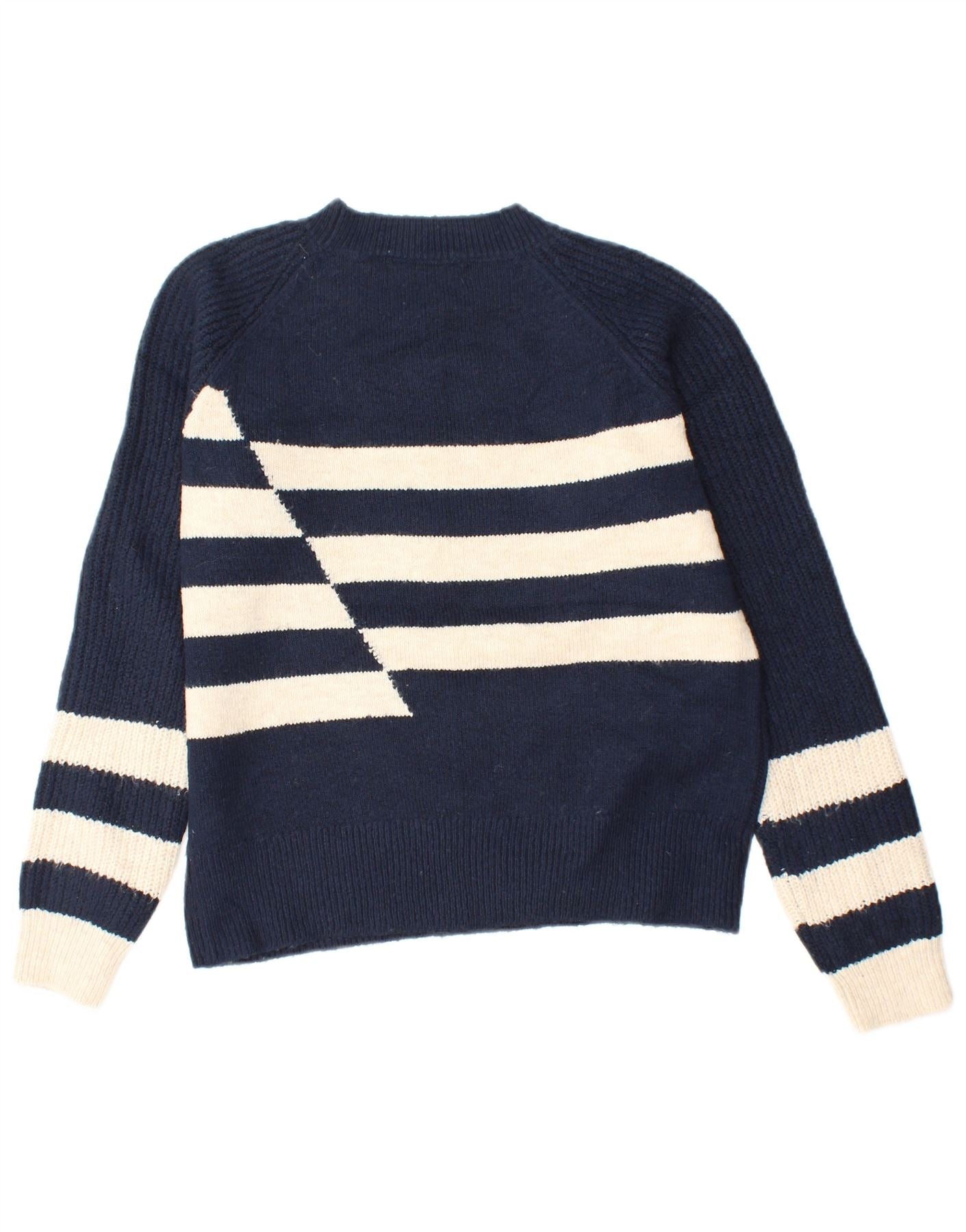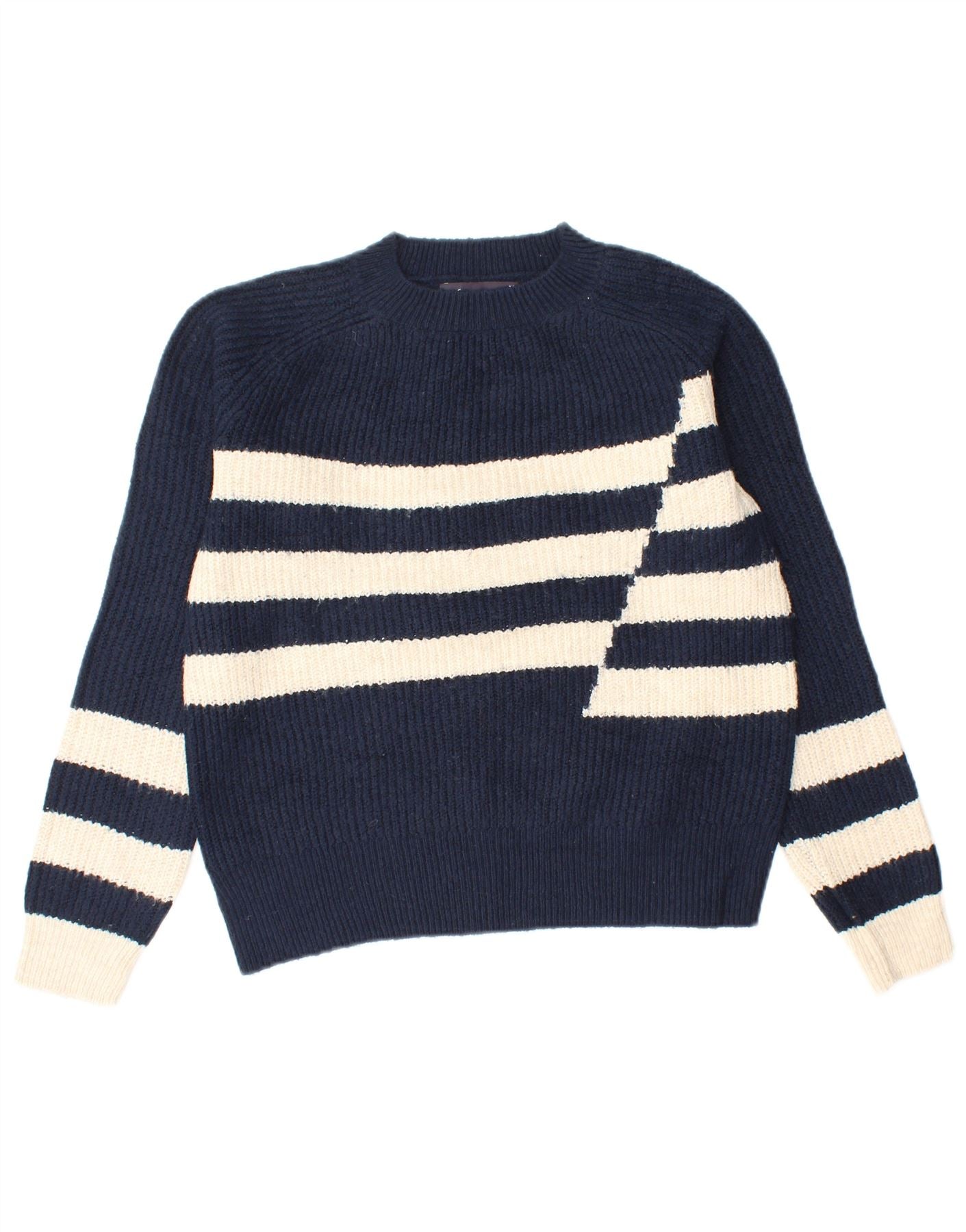 MARKS & SPENCER Womens Crew Neck Jumper Sweater UK 6 XS Navy Blue Striped