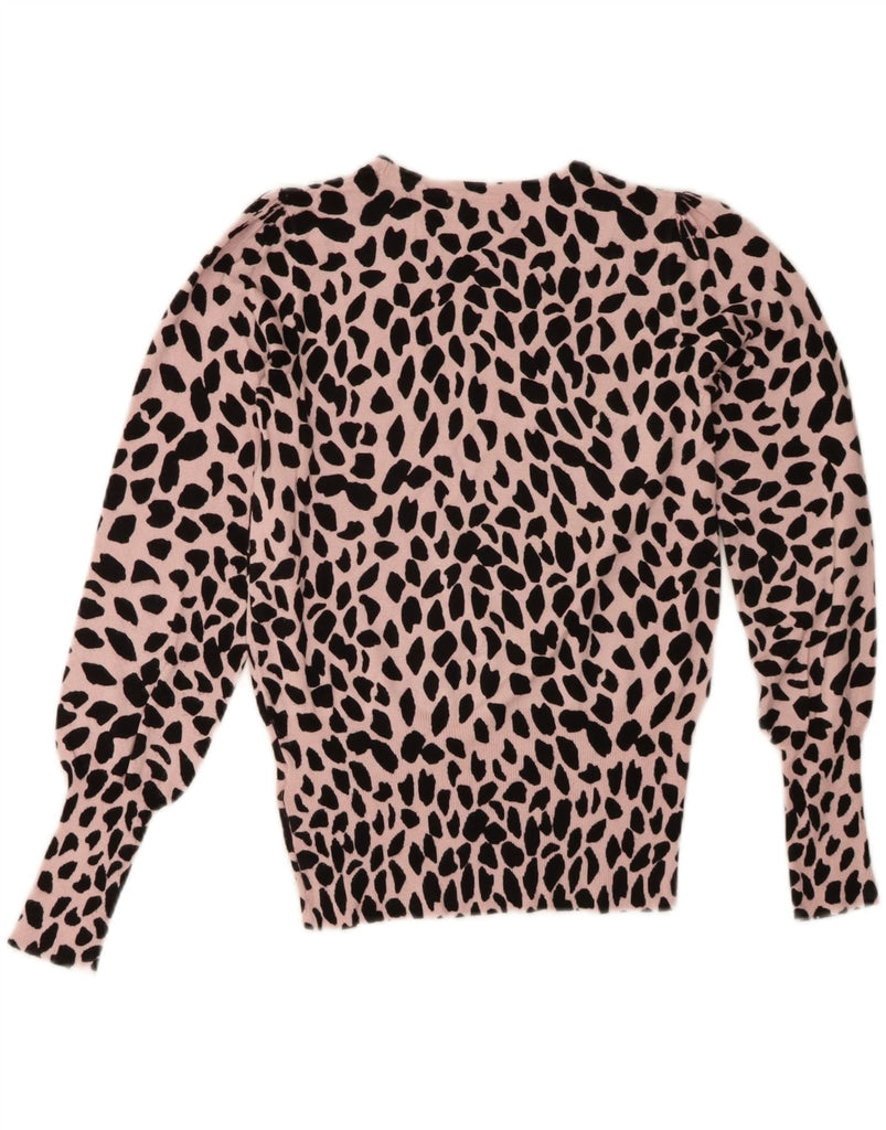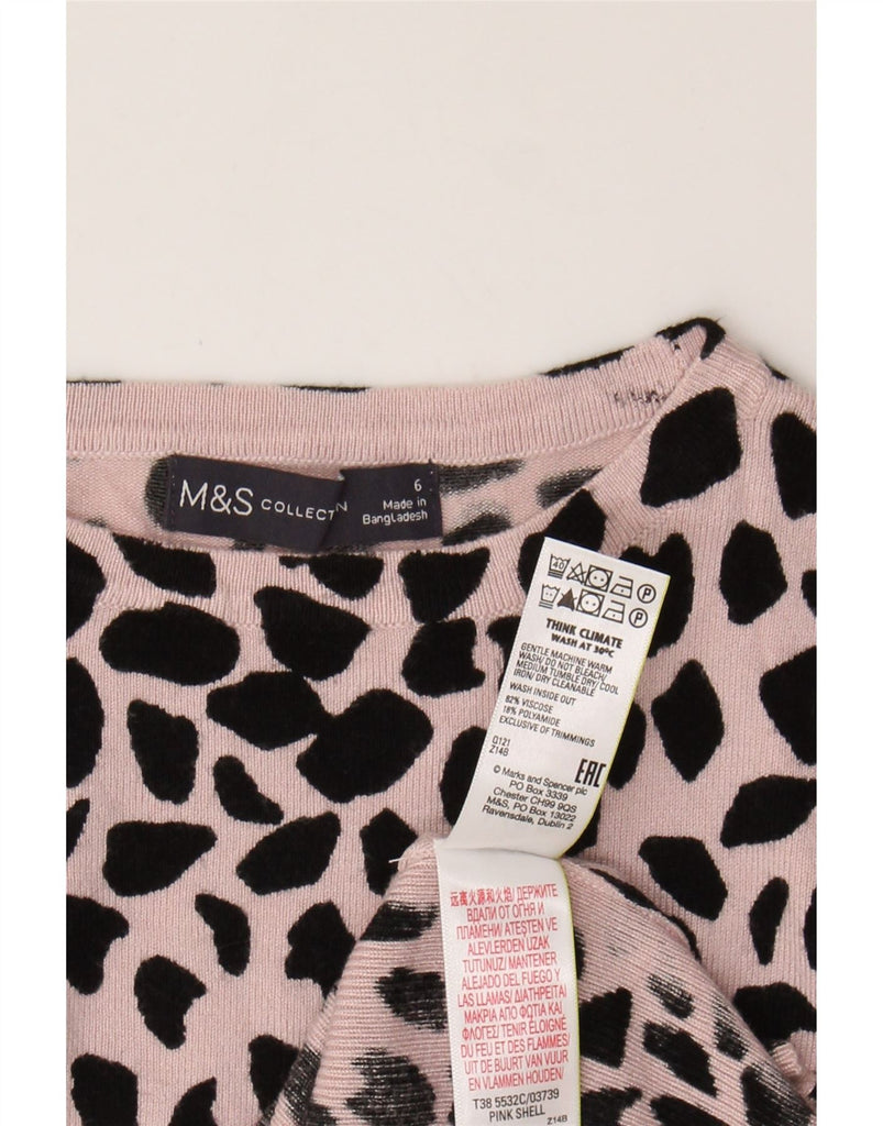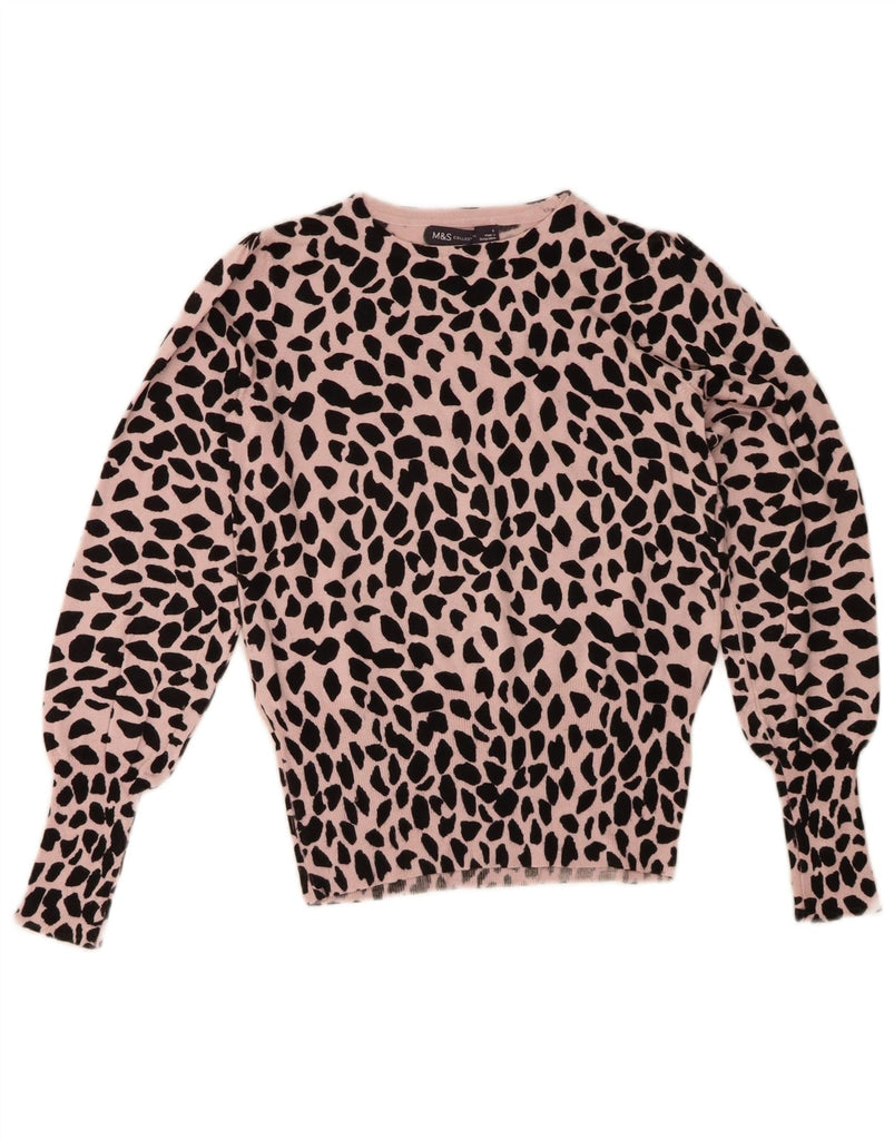 MARKS & SPENCER Womens Crew Neck Jumper Sweater UK 6 XS Pink Animal Print