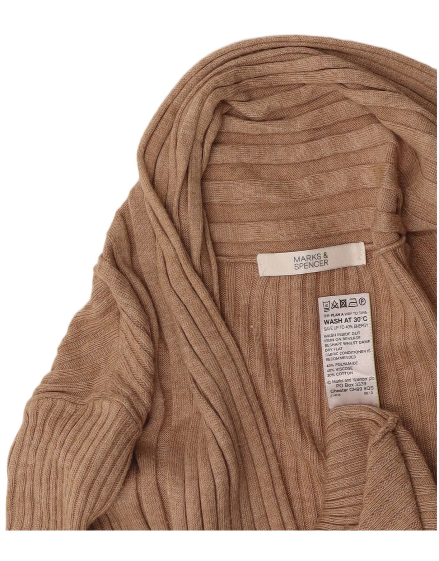 MARKS & SPENCER Womens Longline Open Cardigan Sweater UK 14 Medium Beige