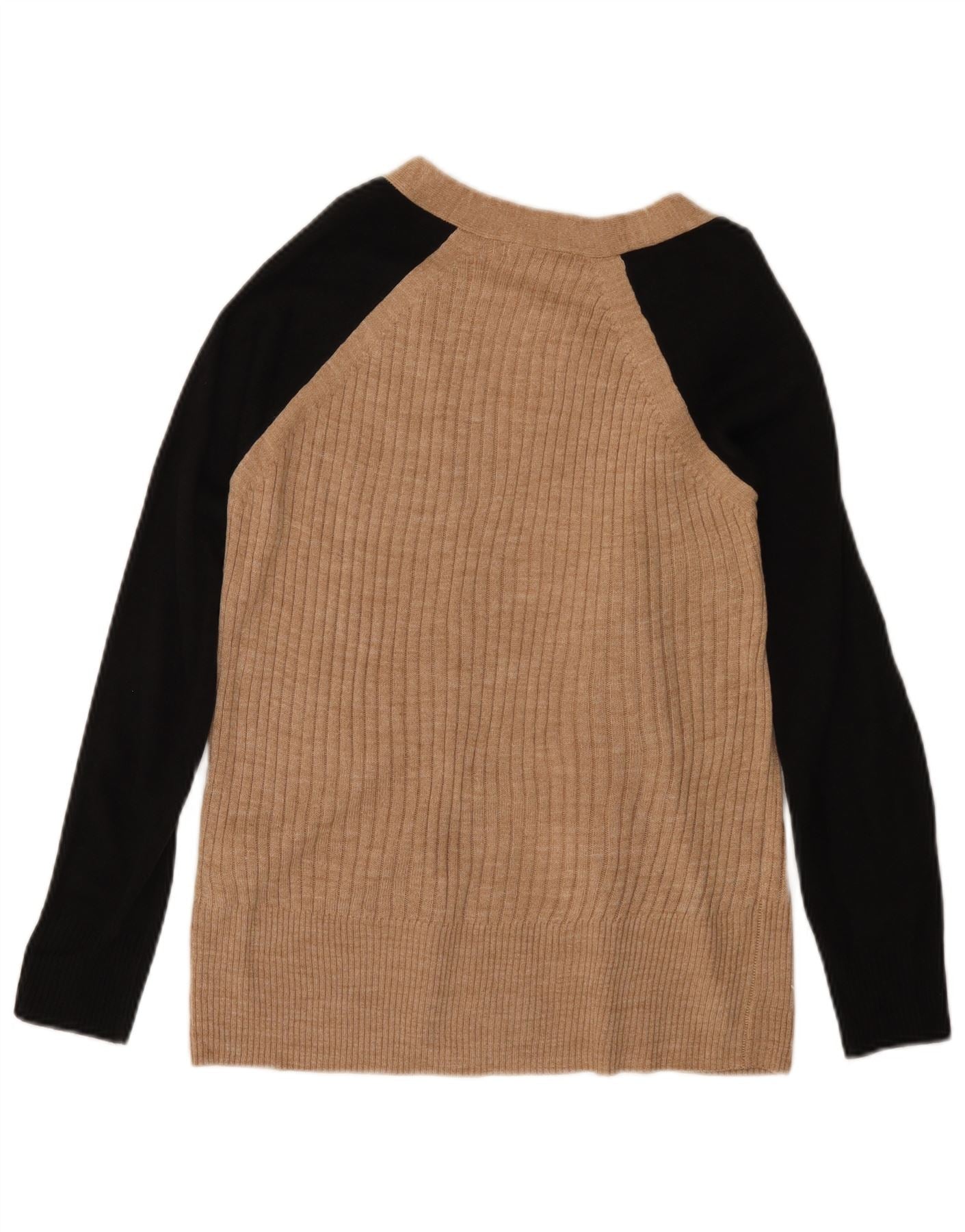 MARKS & SPENCER Womens Open Cardigan Sweater UK 6 XS Beige Colourblock