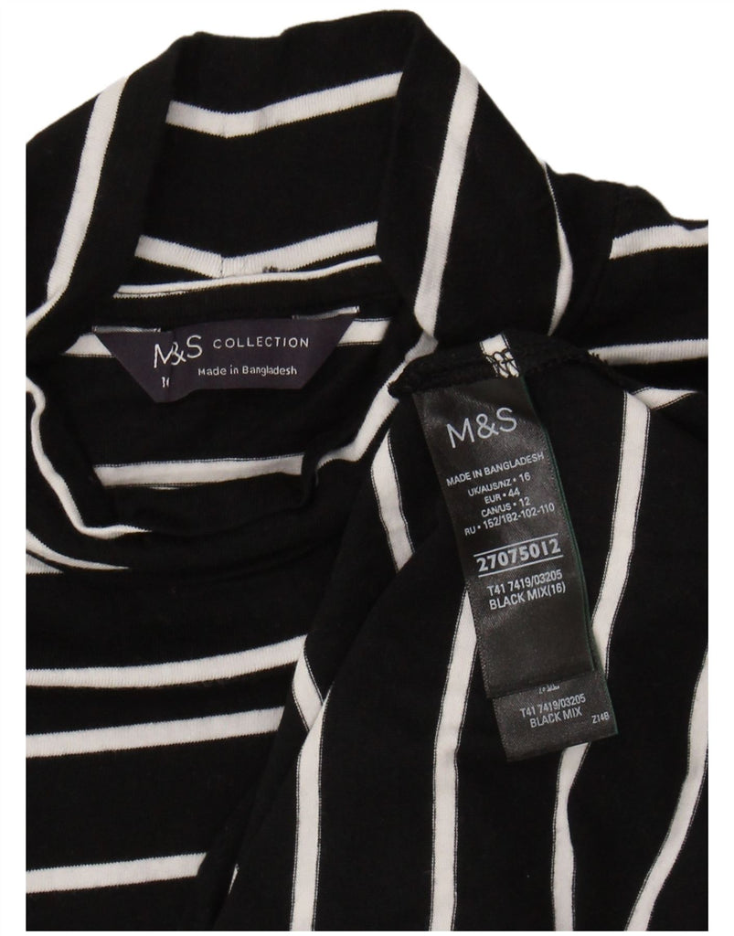 MARKS & SPENCER Womens Roll Neck Top Long Sleeve UK 16 Large Black Striped