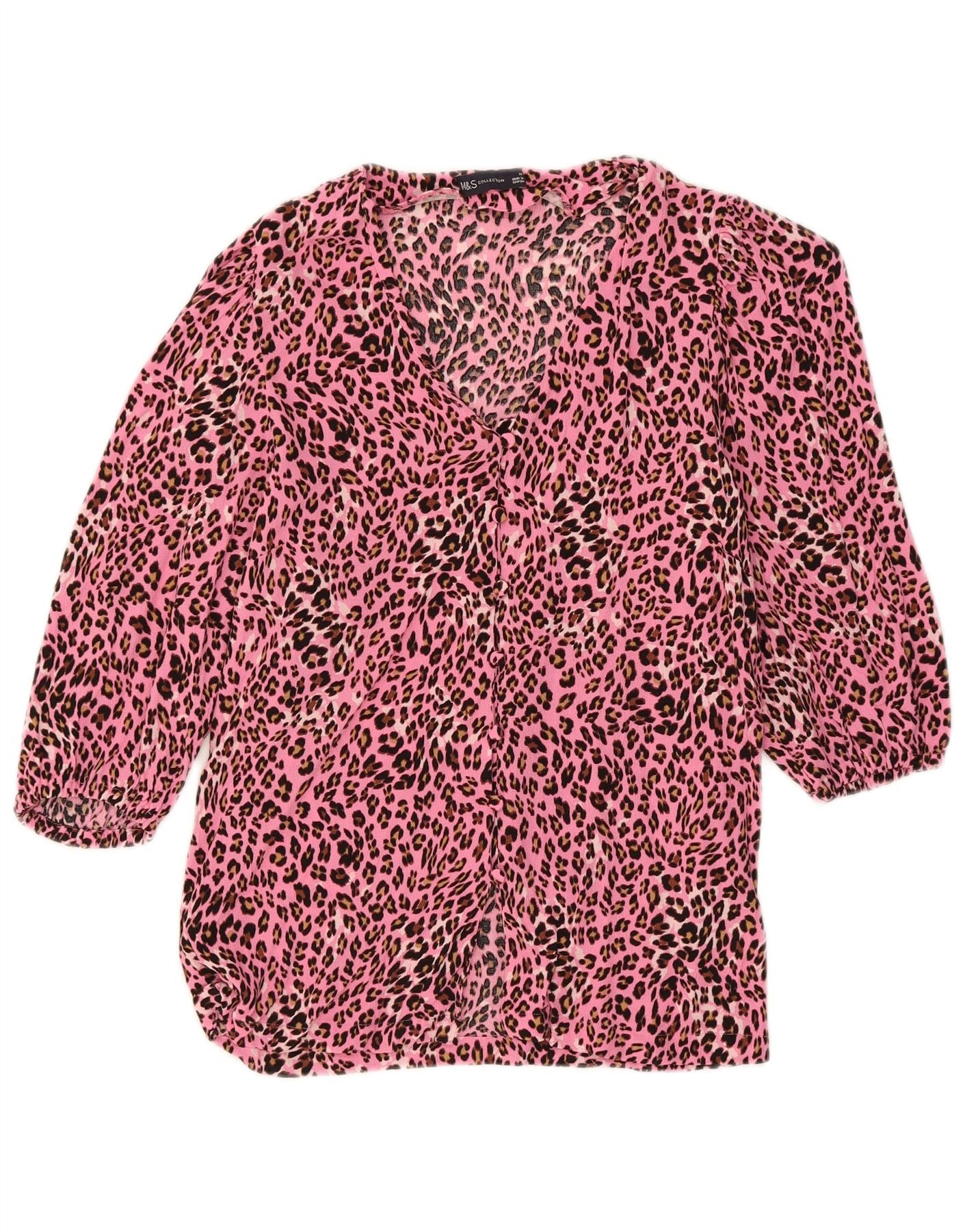 MARKS & SPENCER Womens Shirt Blouse UK 10 Small Pink Animal Print