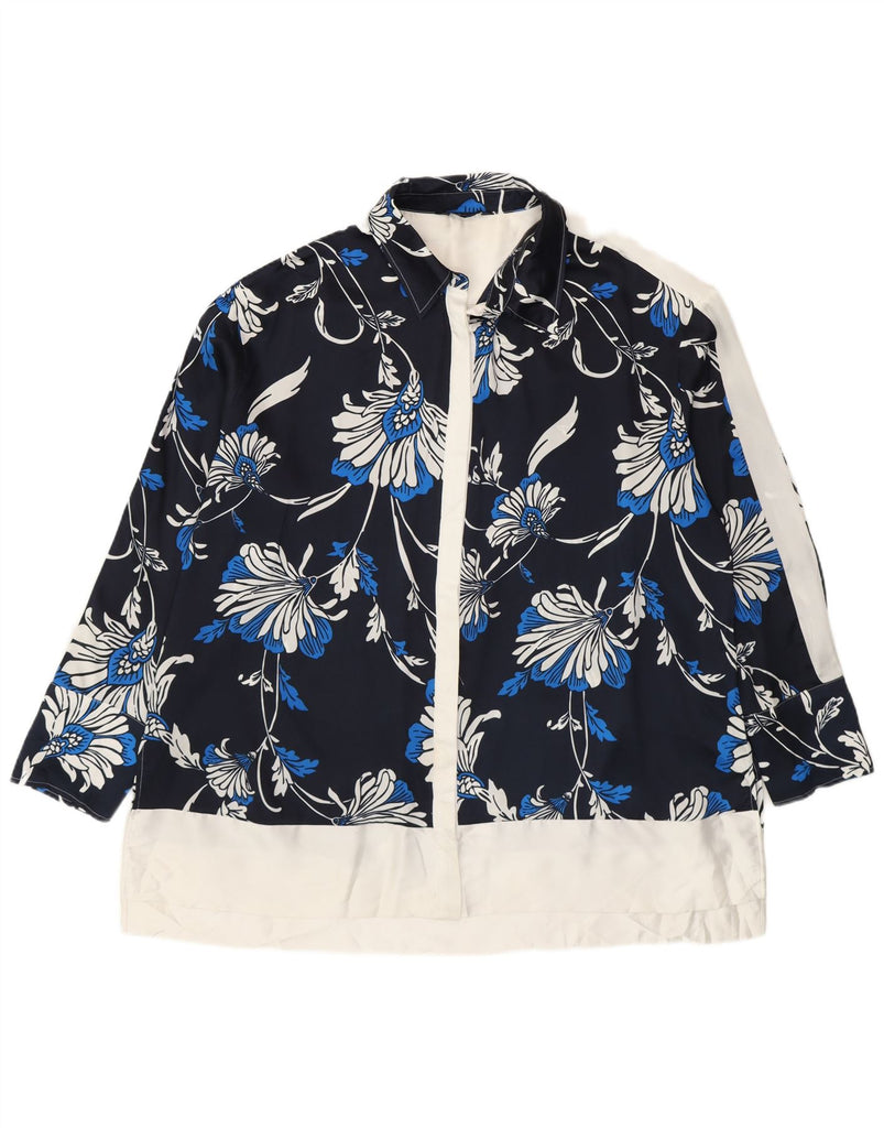 MARKS & SPENCER Womens Shirt UK 20 2XL Navy Blue Floral Polyester