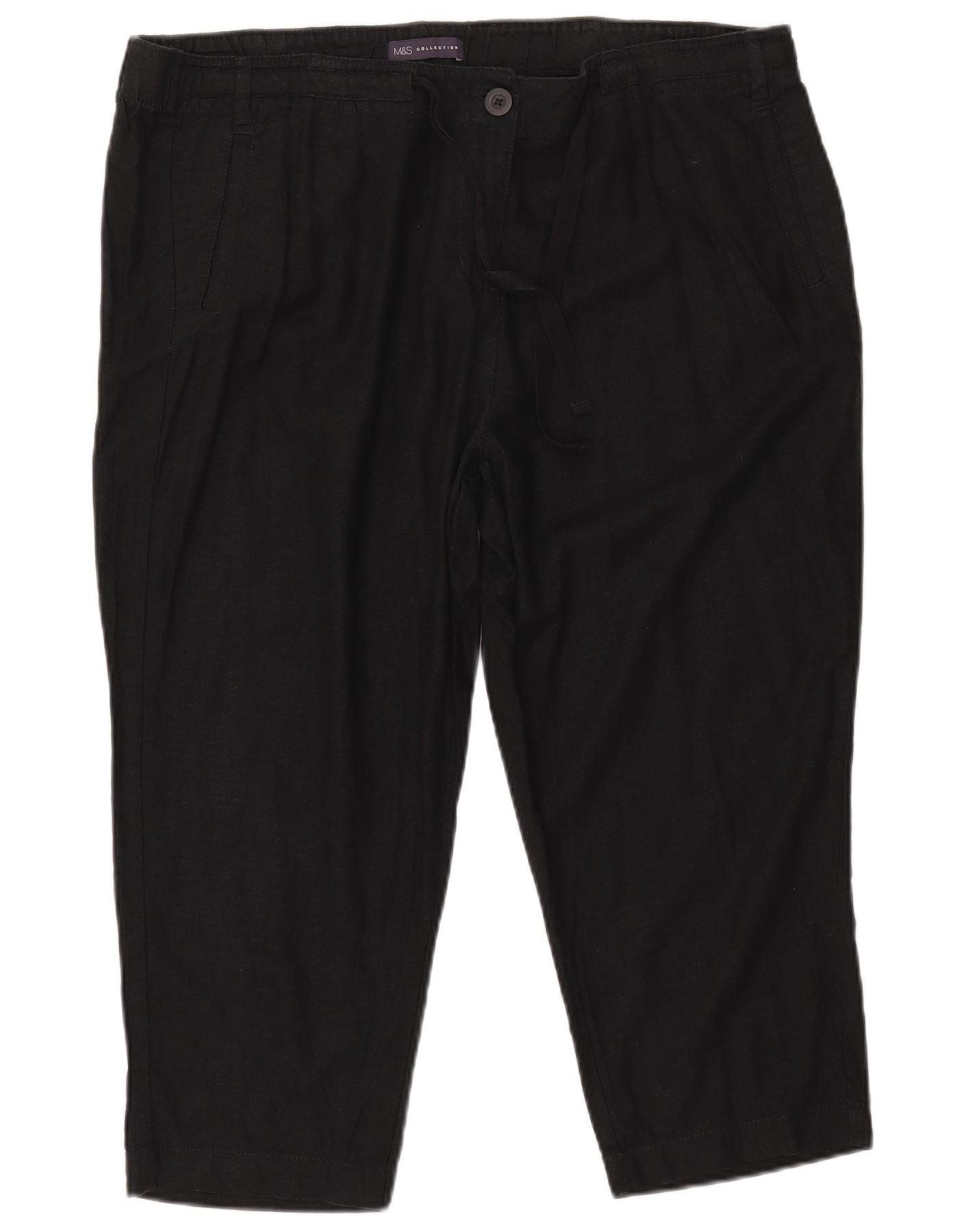 Marks & Spencer Womens Slim Capri Trousers UK 20 2XL W40 L22 Black Linen
