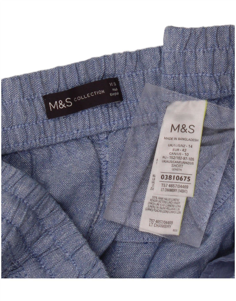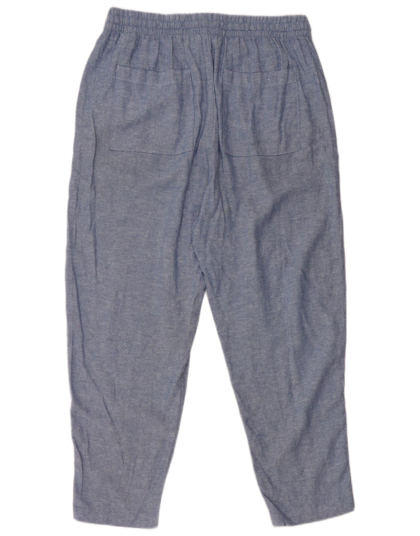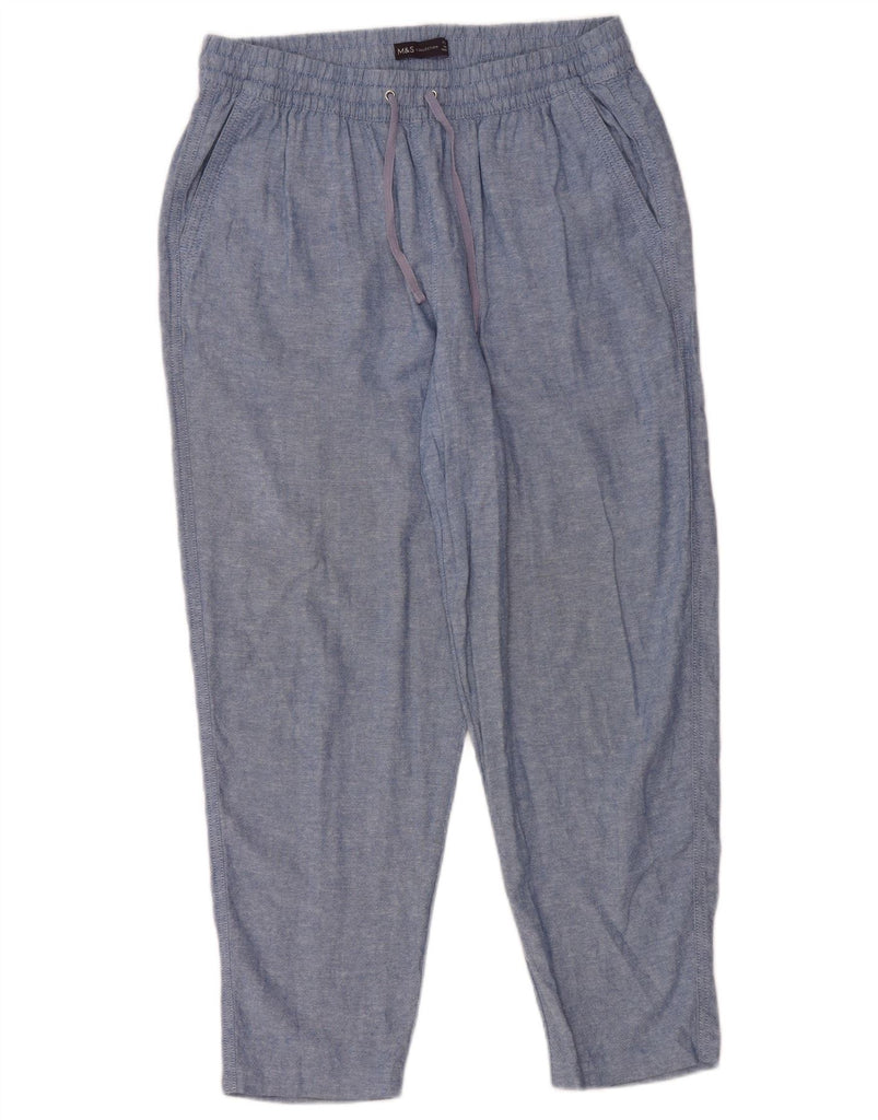 MARKS & SPENCER Womens Slim Casual Trousers UK 14 Large W34 L26 Blue Linen