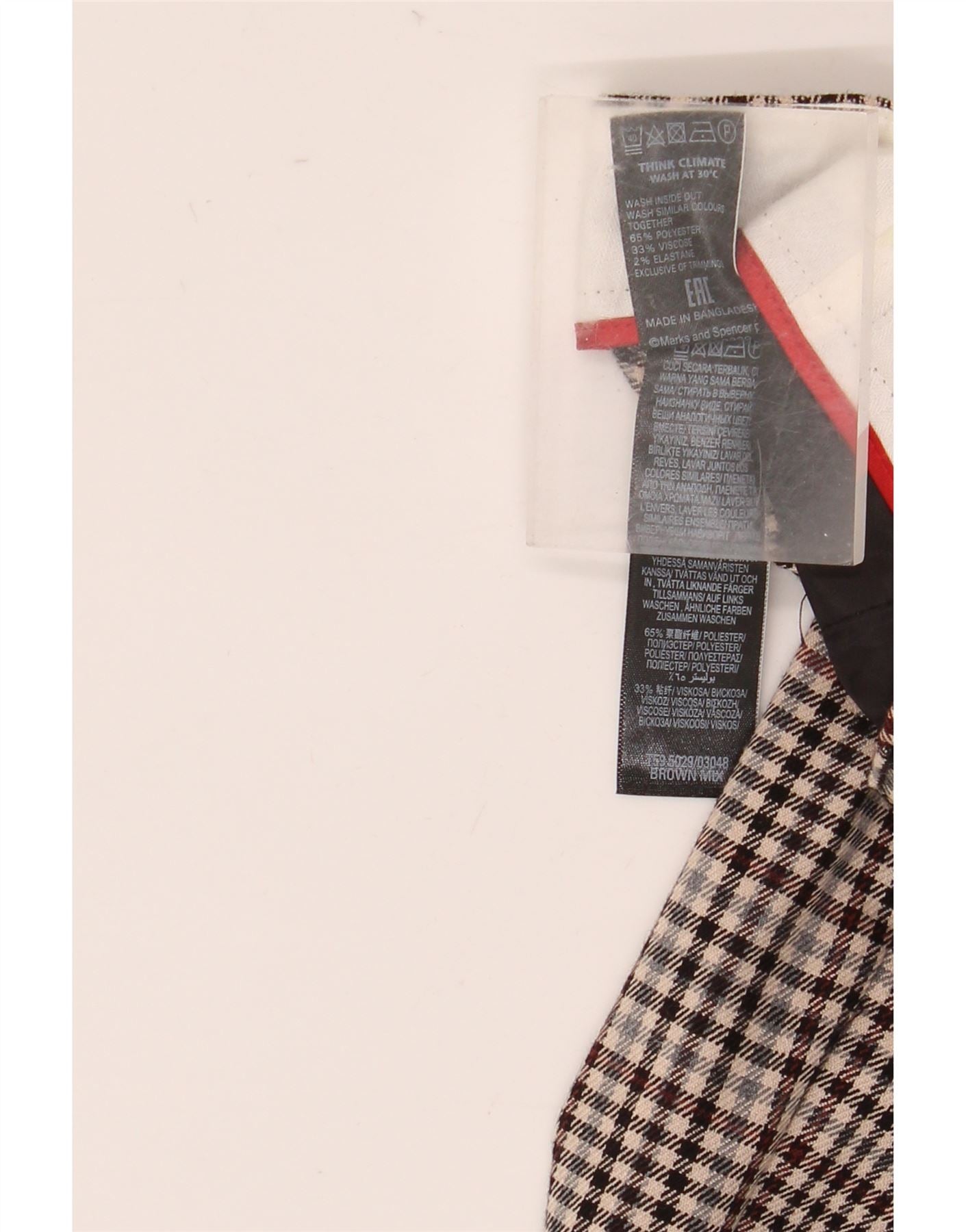 - AI Description: These Marks & Spencer womens cropped trousers are crafted from a comfortable polyester and viscose blend with a subtle stretch. They feature a sophisticated brown check pattern. The mid-rise waist and zip closure ensure a smooth fit. Tapered legs create a modern, slim silhouette. Practical pockets add functionality. A button accent completes the design.