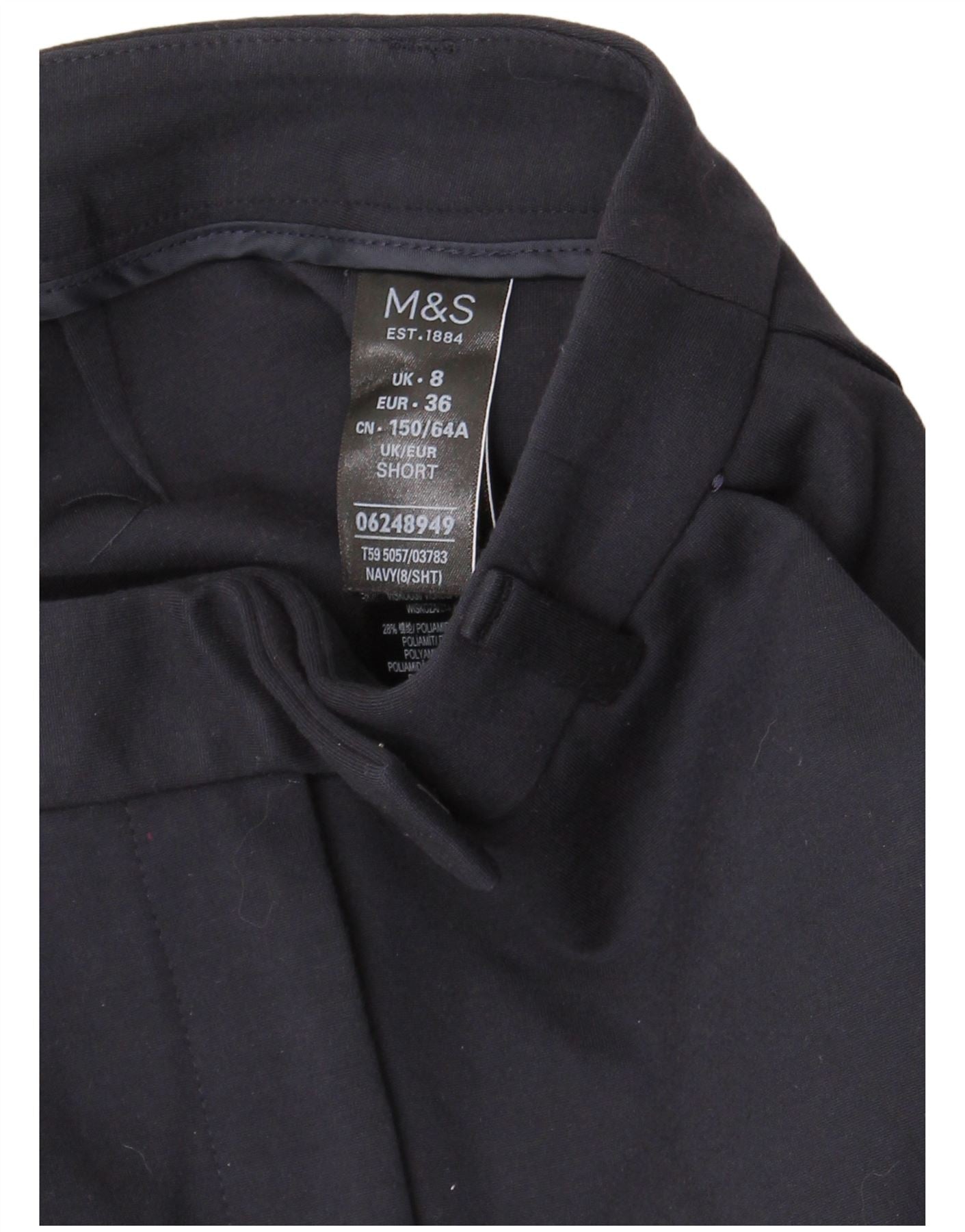 Marks & Spencer Womens Slim Suit Trousers UK 8 Small W26 L24 Navy Blue