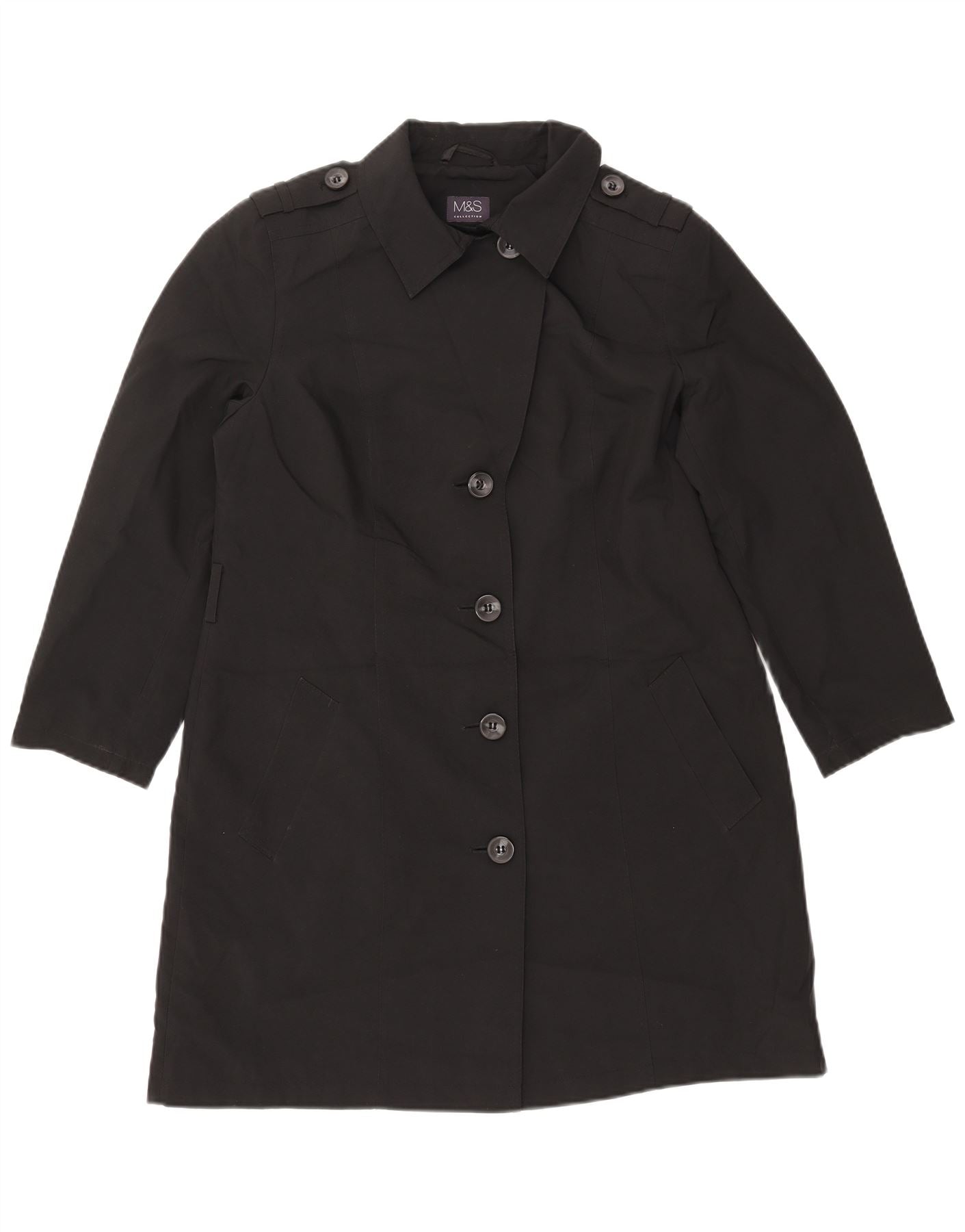 MARKS & SPENCER Womens Trench Coat UK 14 Large Black Polyester