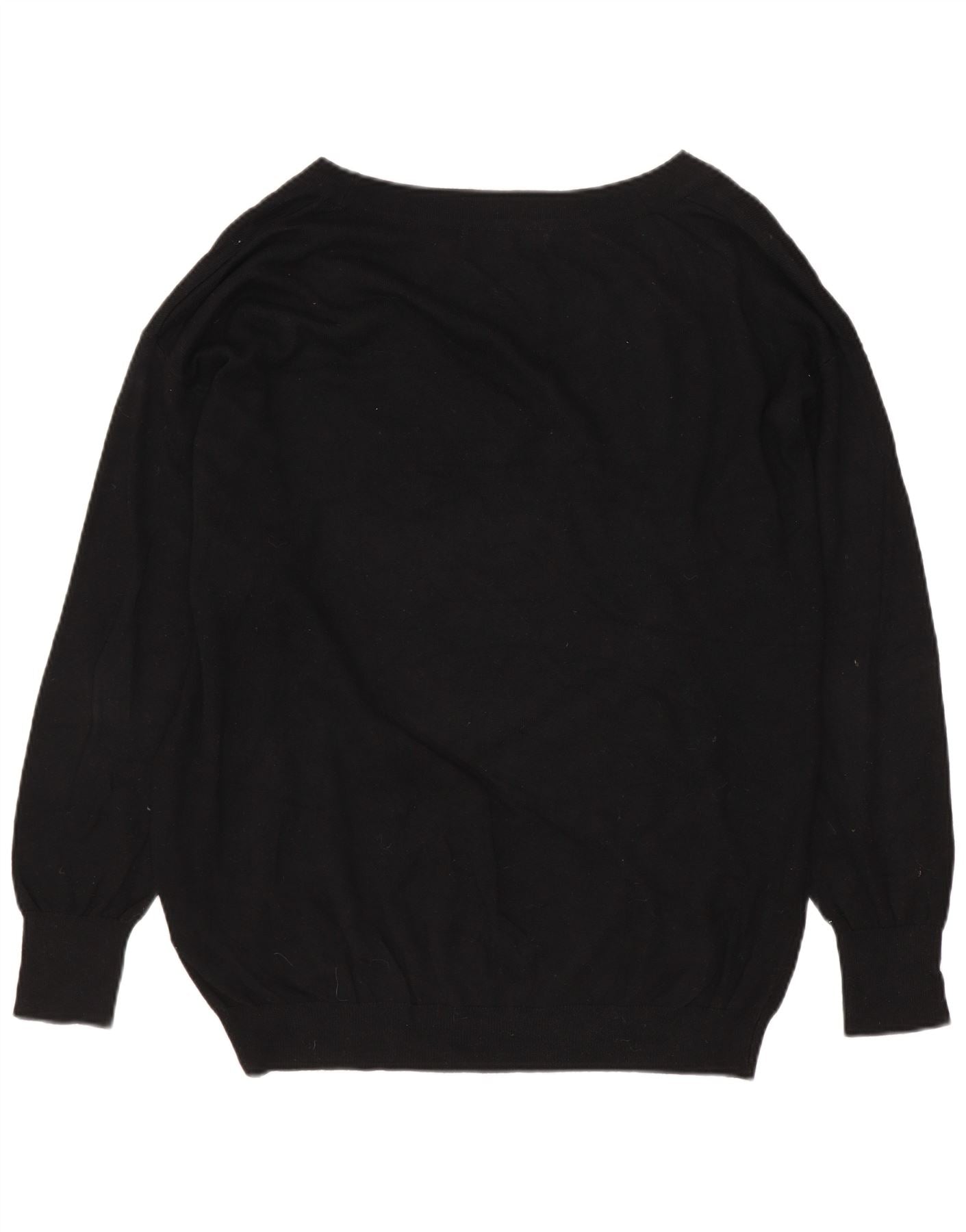 MARKS & SPENCER Womens V-Neck Jumper Sweater UK 14 Large Black Cotton