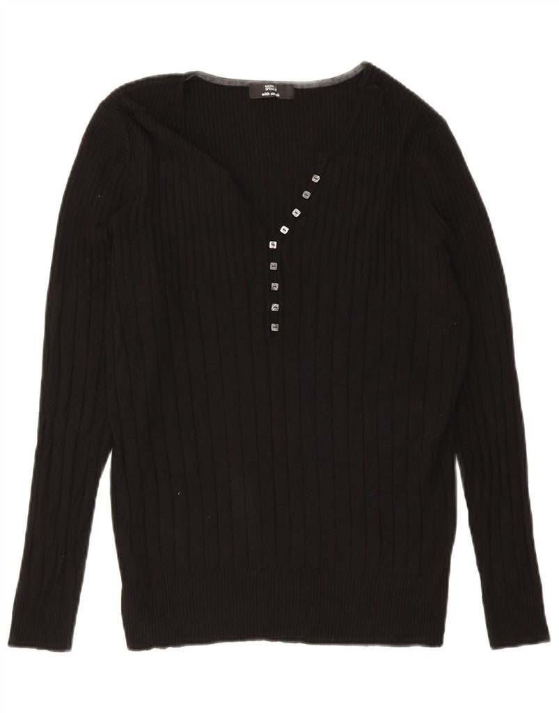 MARKS & SPENCER Womens V-Neck Jumper Sweater UK 16 Large Black