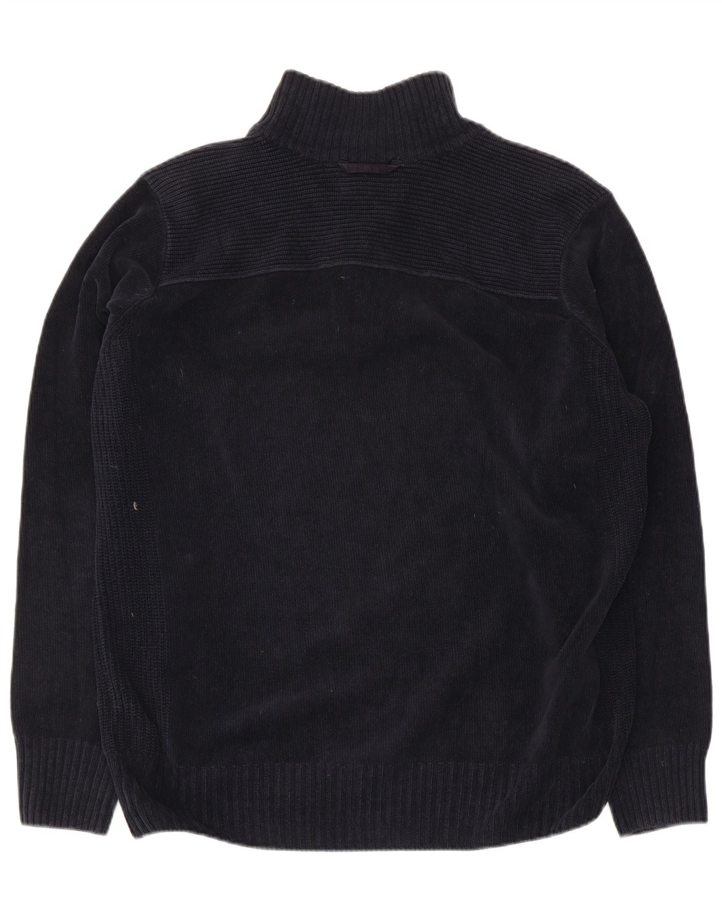 MARLBORO CLASSICS Mens Button Neck Jumper Sweater Large Navy Blue Cotton