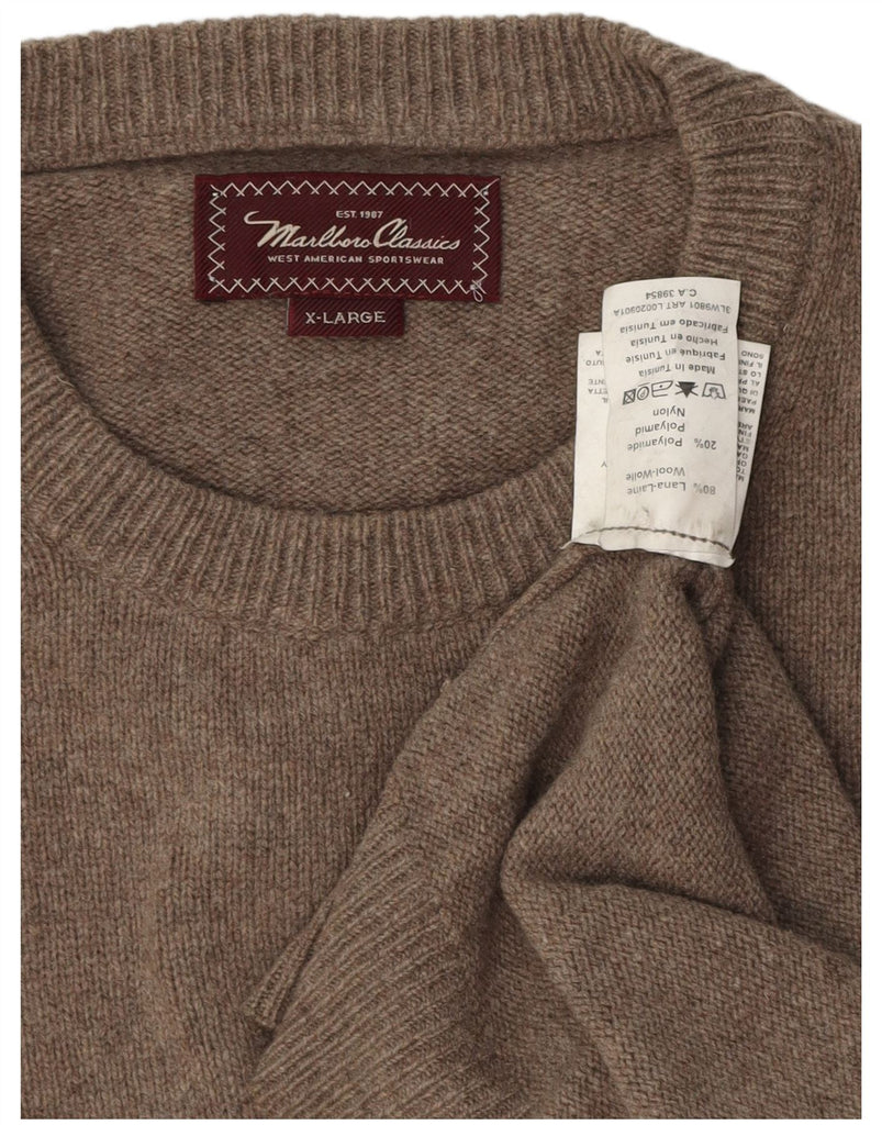 MARLBORO CLASSICS Mens Crew Neck Jumper Sweater XL Brown Wool