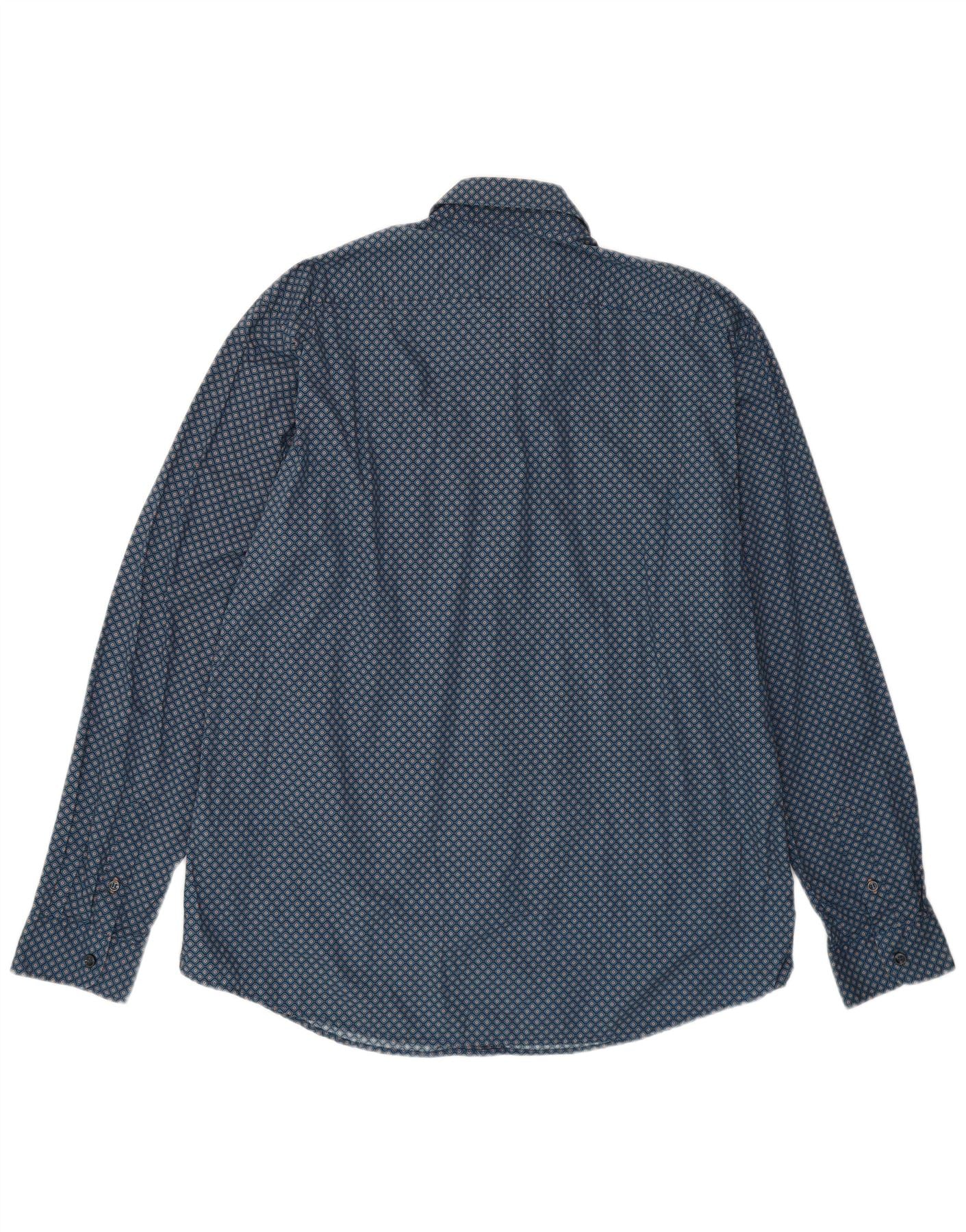 - AI Description: This Marlboro Classics mens shirt is crafted from 100 percent cotton woven fabric. It features a distinctive blue geometric pattern throughout. The collared neckline and full button-up front offer a classic, refined look. Long sleeves with buttoned cuffs complete the tailored silhouette. A single chest pocket adds practical detail. This custom fit shirt provides a comfortable regular fit.
