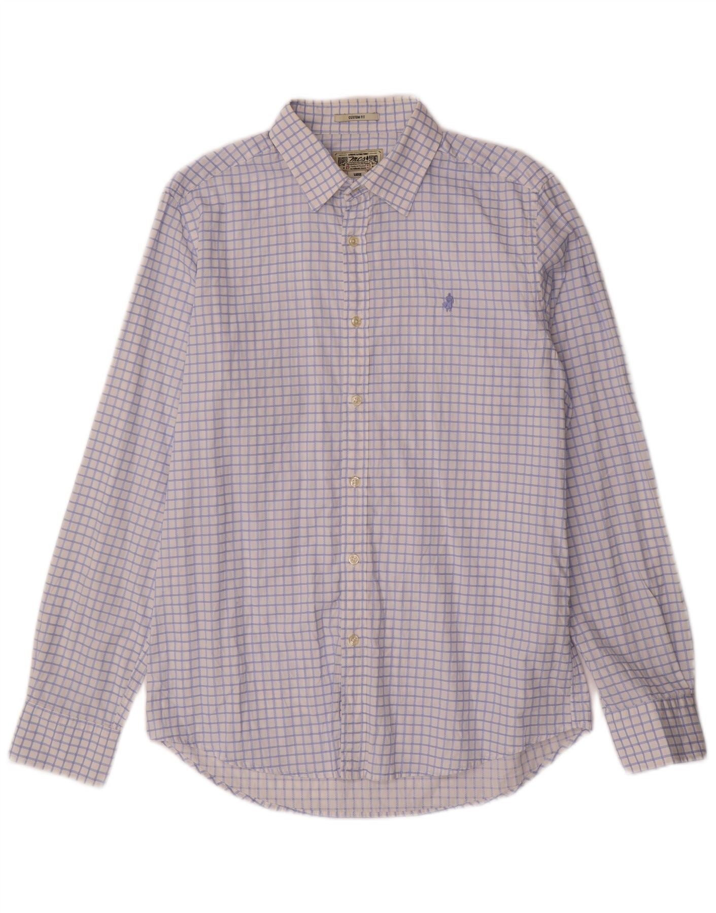 Marlboro Classics Mens Custom Fit Shirt Large Blue Check Cotton