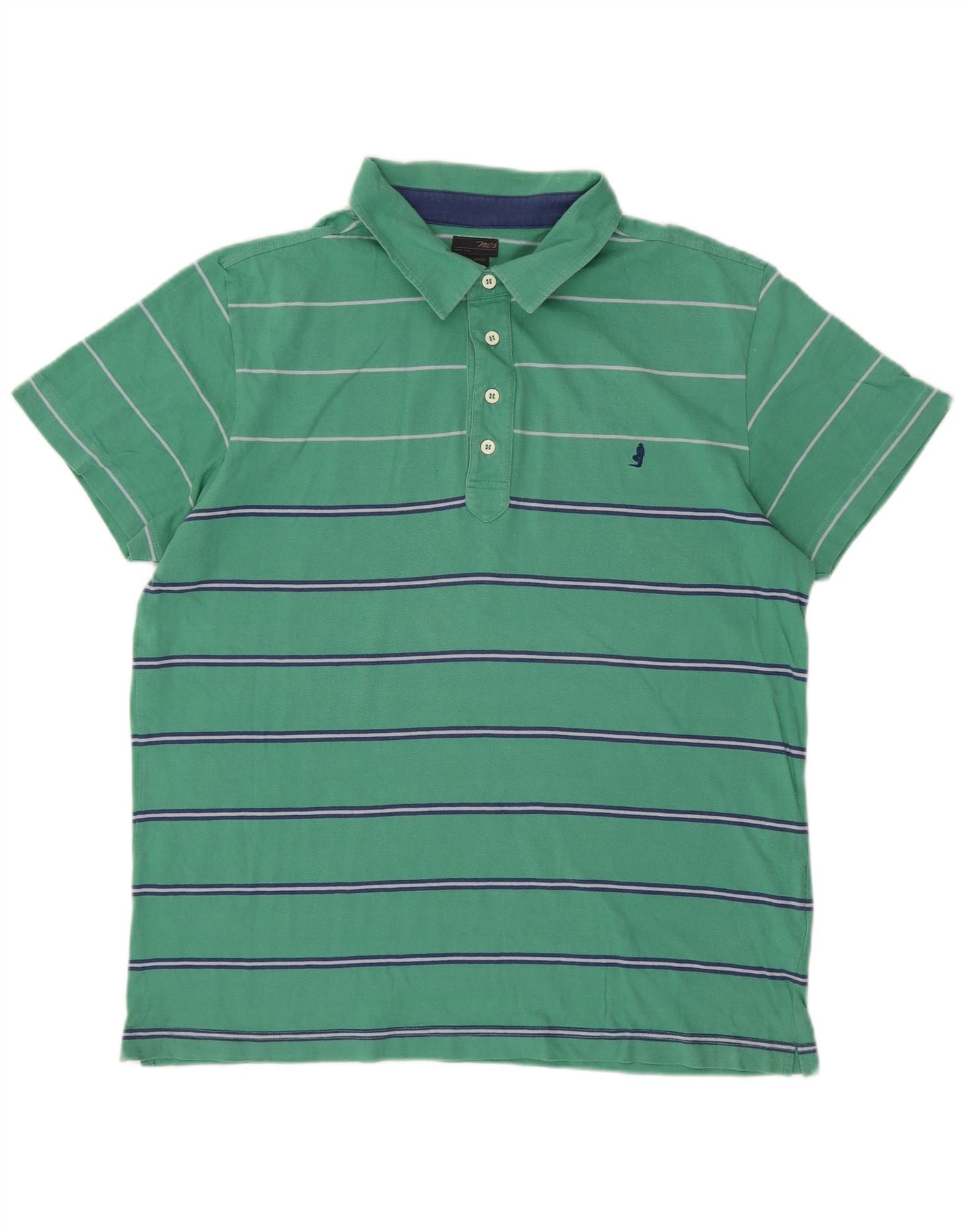 MARLBORO CLASSICS Mens Polo Shirt 2XL Green Striped Cotton