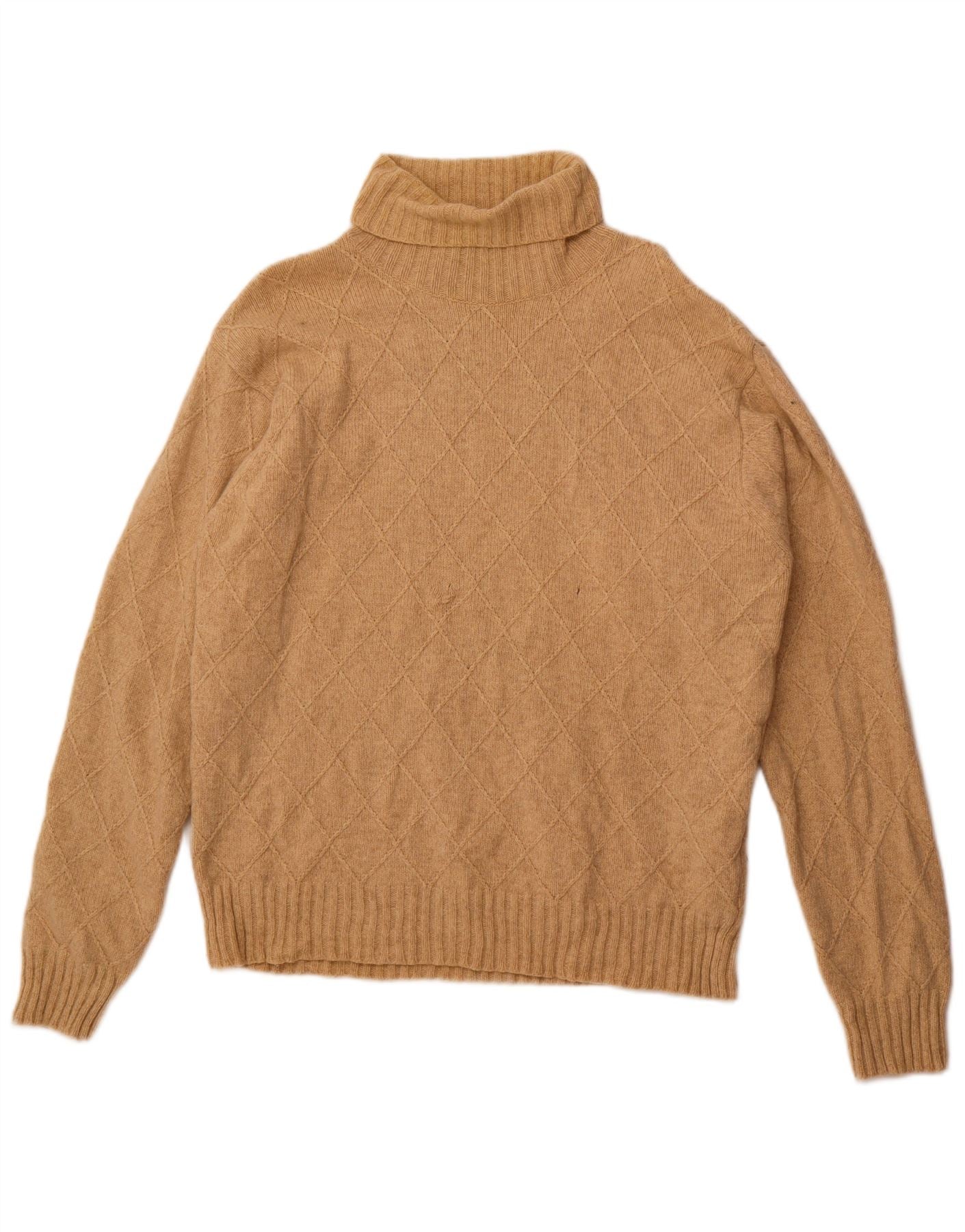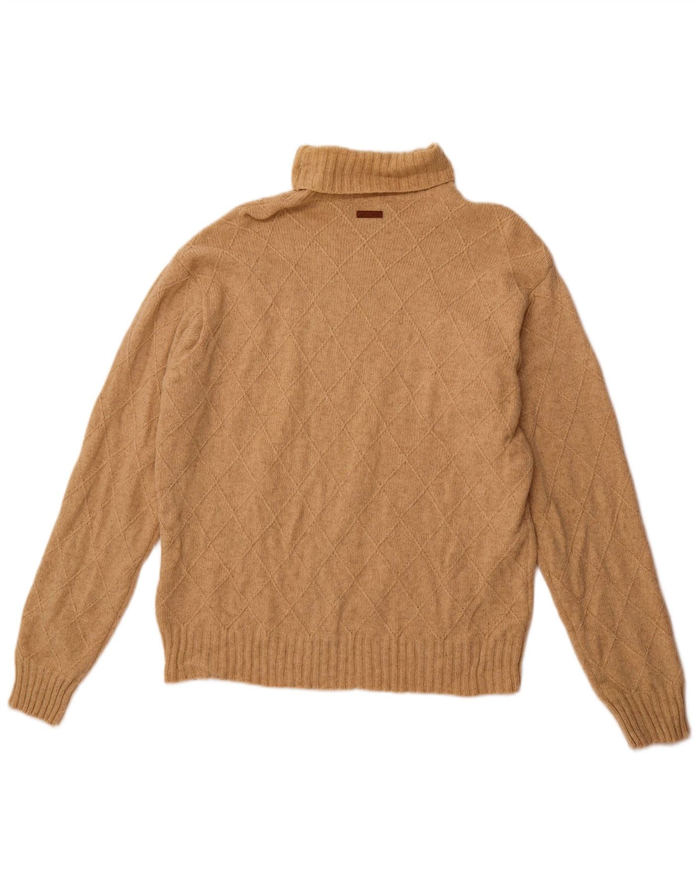 - AI Description: This Marlboro Classics mens roll neck jumper sweater is crafted from a warm wool blend knit. The beige fabric features a classic argyle diamond pattern, adding sophisticated detail. Its roll neck provides extra warmth and a refined silhouette. Long sleeves and a regular fit ensure comfortable wear. This pullover design offers both thermal properties and stretch for ease of movement.