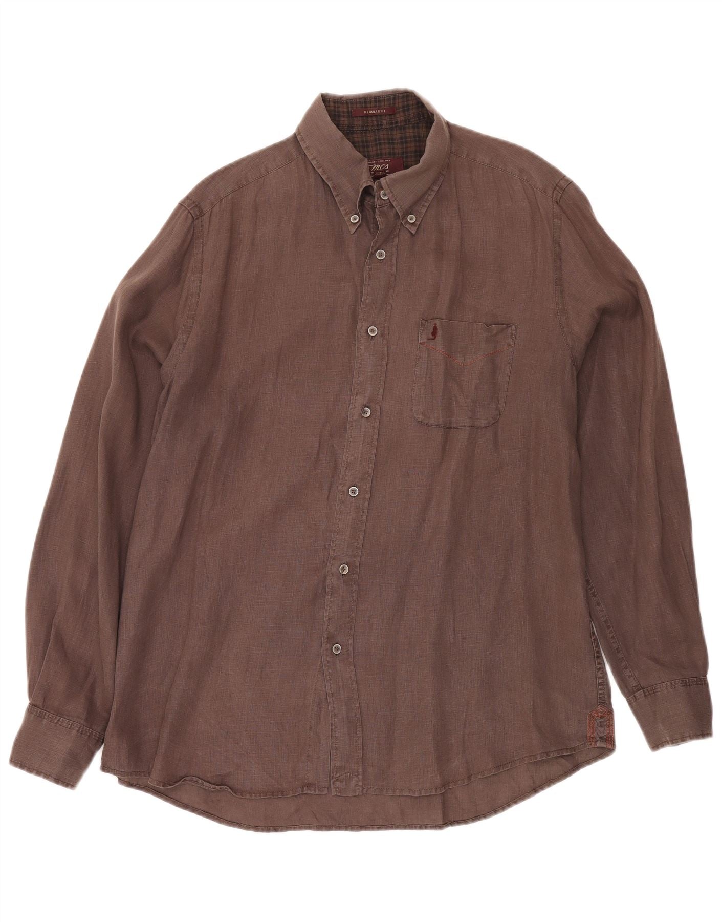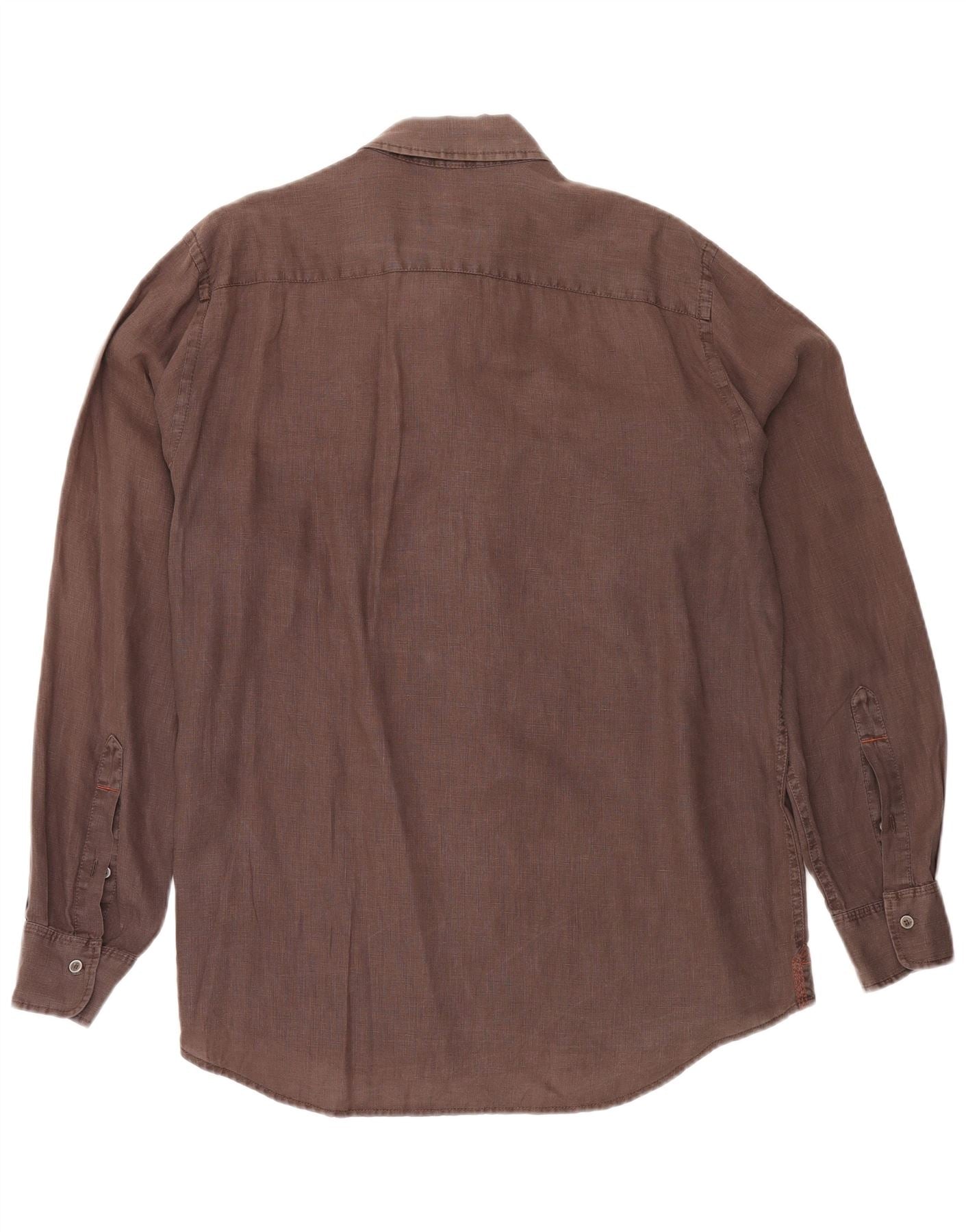 MARLBORO CLASSICS Mens Rugged & Refined Regular Fit Shirt XL Brown Linen
