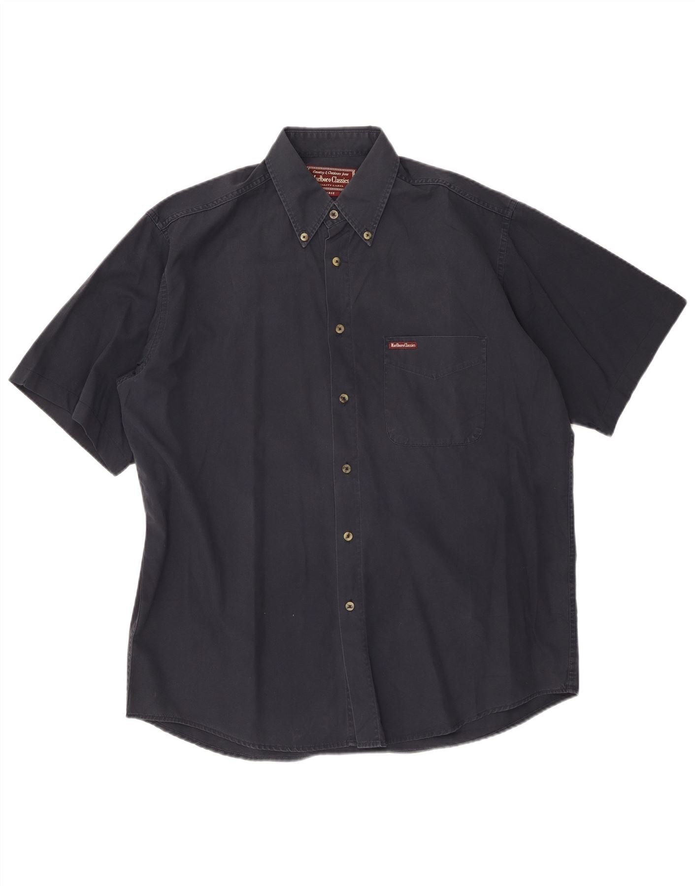 MARLBORO CLASSICS Mens Short Sleeve Shirt Large Navy Blue Cotton
