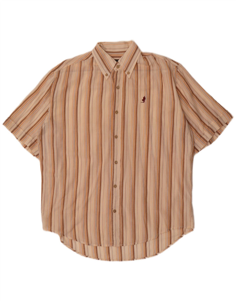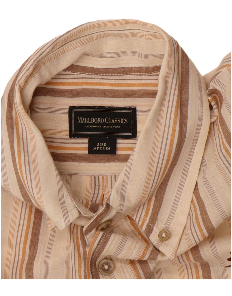 MARLBORO CLASSICS Mens Short Sleeve Shirt Medium Beige Striped Cotton