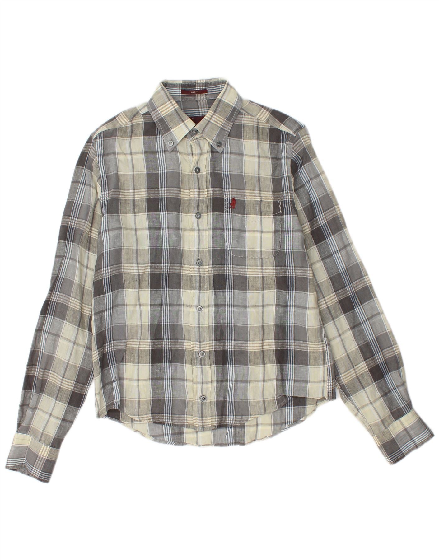MARLBORO CLASSICS Mens Slim Fit Shirt Small Multicoloured Check Linen