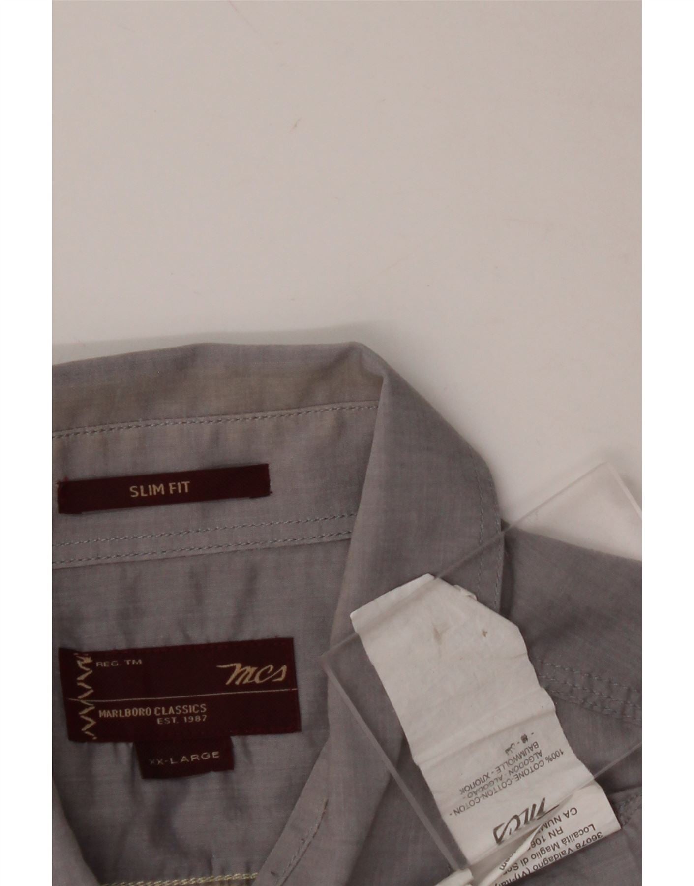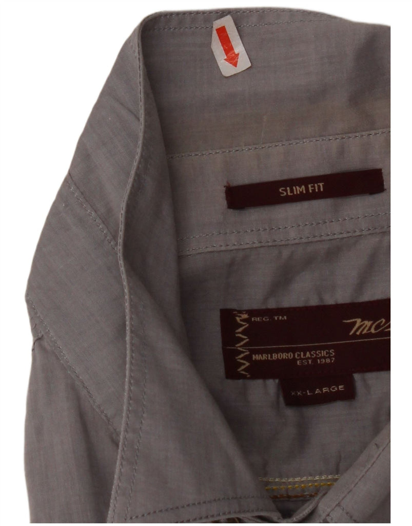 MARLBORO CLASSICS Mens Slim Fit Short Sleeve Shirt 2XL Grey Cotton