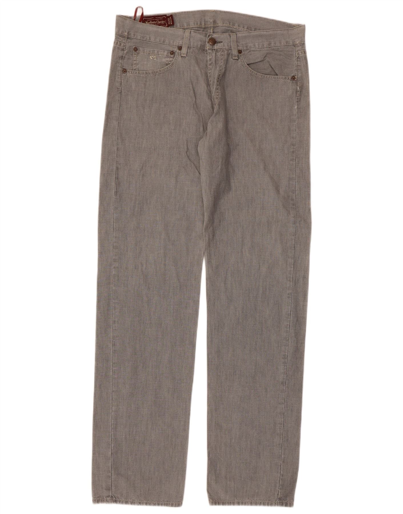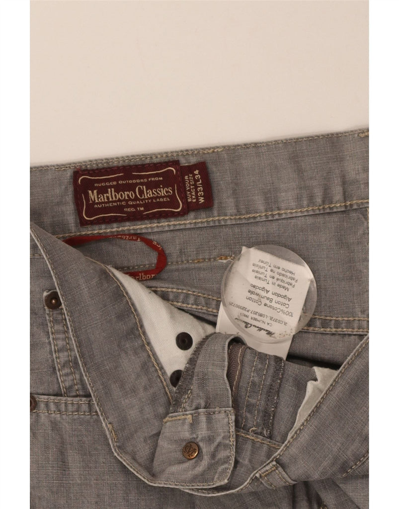 MARLBORO CLASSICS Mens Straight Casual Trousers W33 L34 Grey Cotton