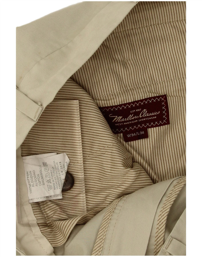 MARLBORO CLASSICS Mens Straight Chino Trousers W34 L34 Beige Cotton