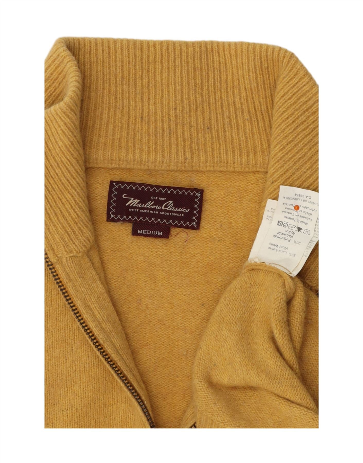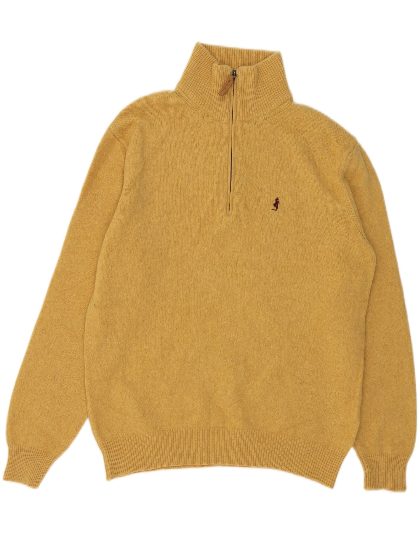 MARLBORO CLASSICS Mens Zip Neck Jumper Sweater Medium Yellow Wool