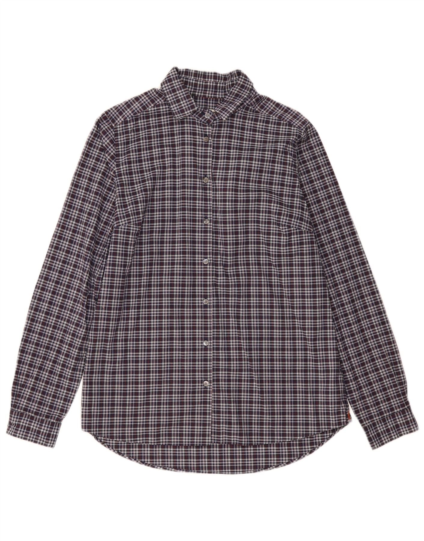 MARLBORO CLASSICS Womens Shirt IT 44 Medium Navy Blue Check Cotton