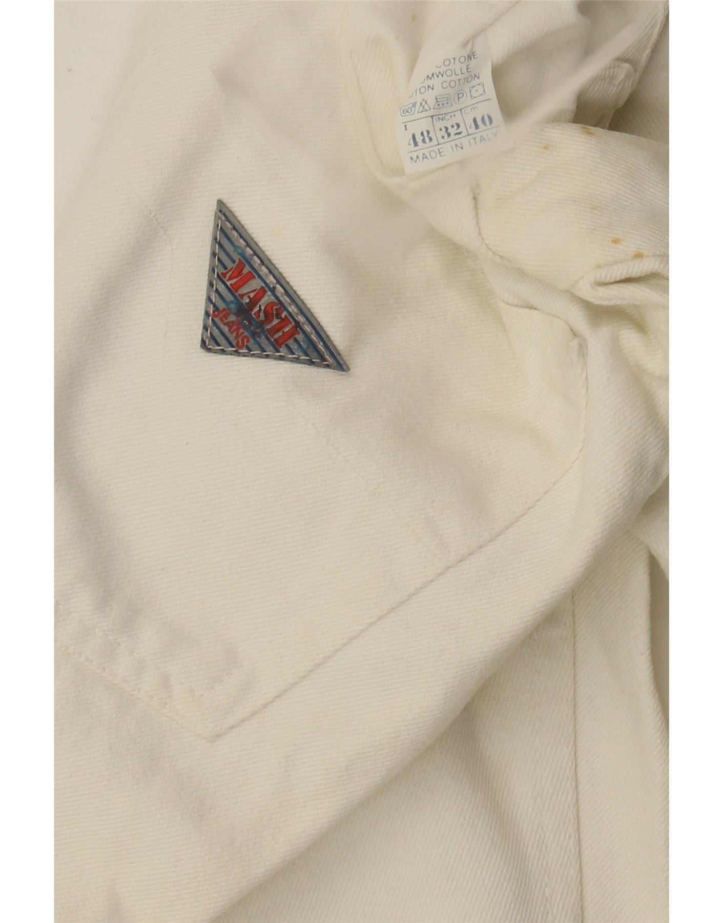 Mash Mens Tapered Jeans IT 48 Medium W32 L33 White Cotton