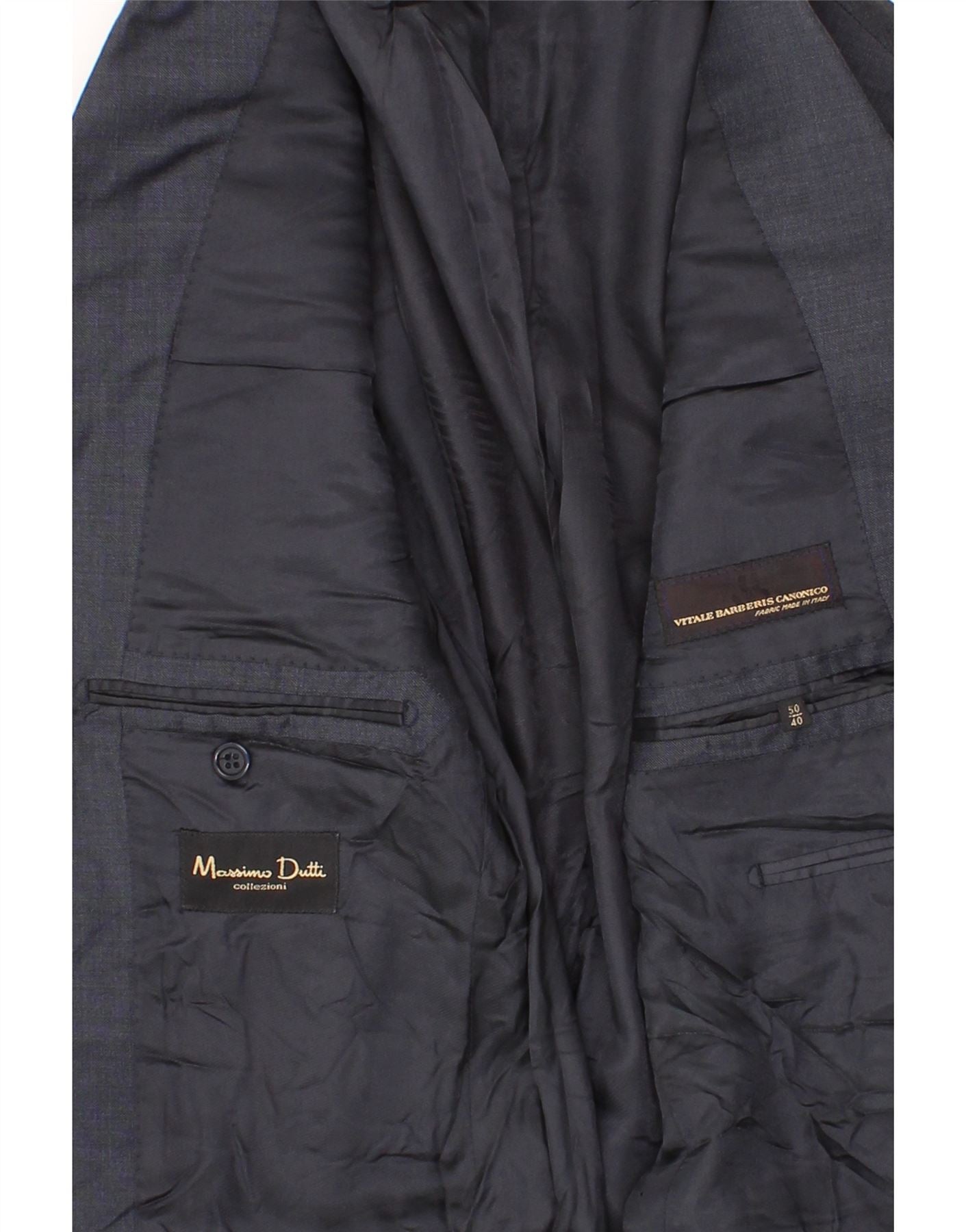 MASSIMO DUTTI Mens 3 Button Blazer Jacket EU 50 Medium Navy Blue Wool