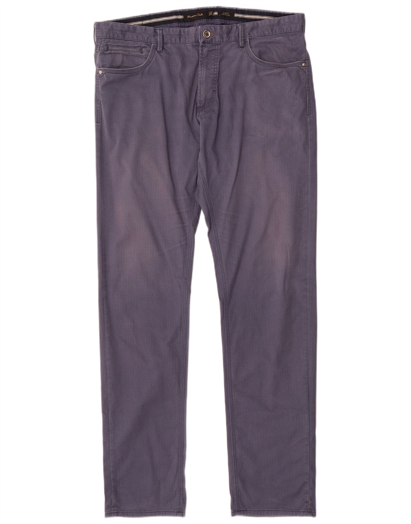 MASSIMO DUTTI Mens Casual Trousers EU 44 Large W34 L33 Navy Blue Spotted