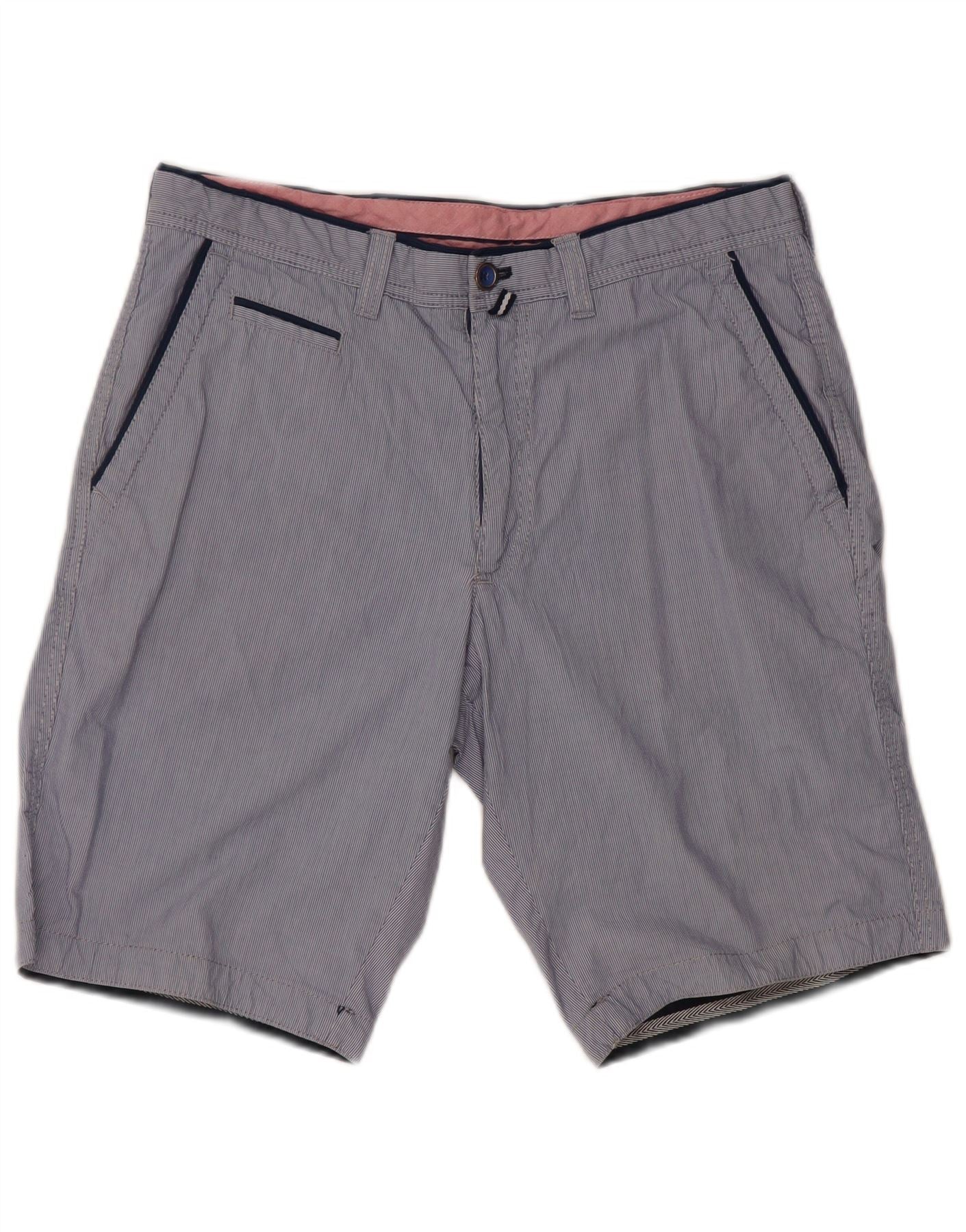 MASSIMO DUTTI Mens Chino Shorts EU 42 Large W32 Blue Pinstripe Cotton