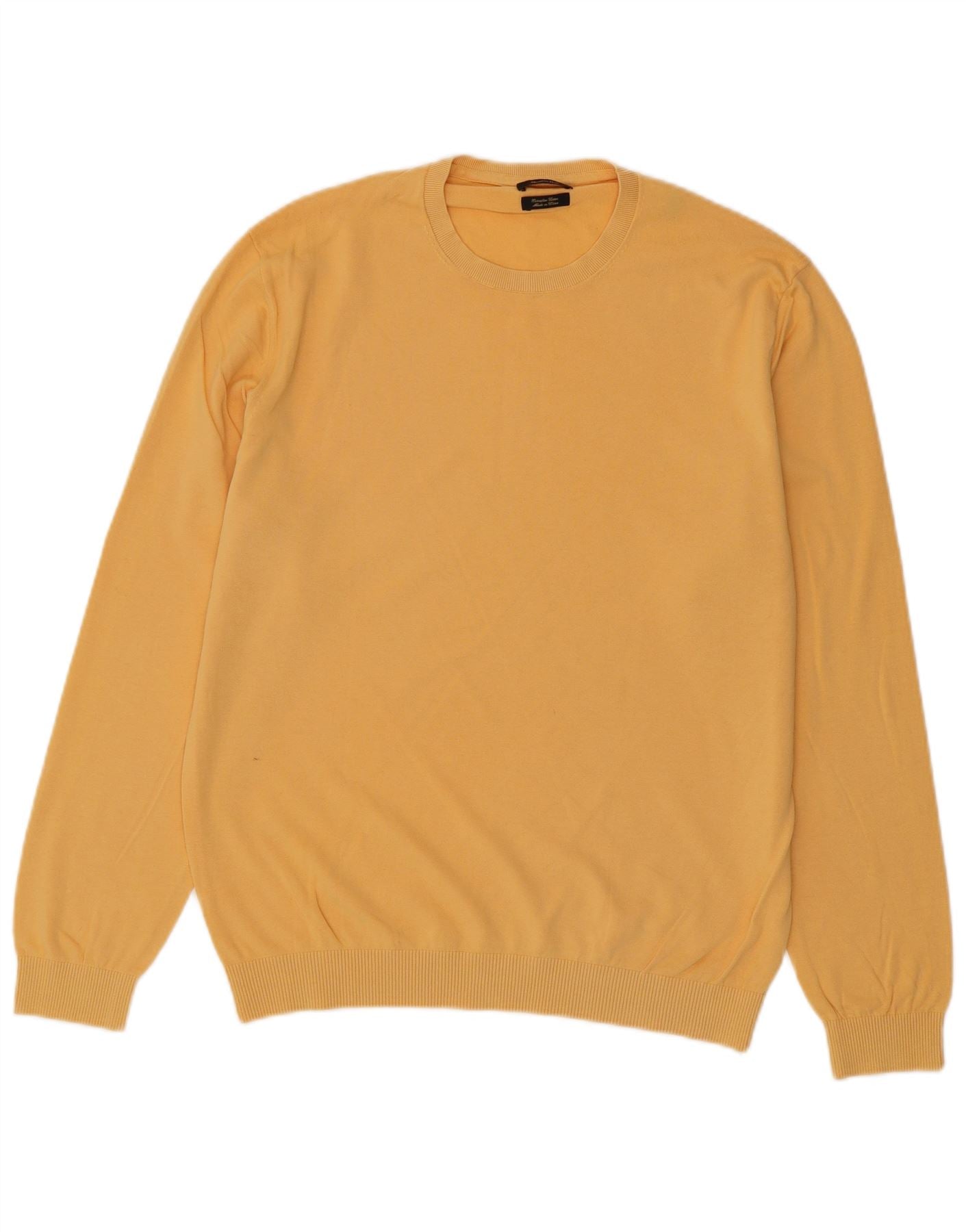 MASSIMO DUTTI Mens Crew Neck Jumper Sweater XL Yellow Cotton