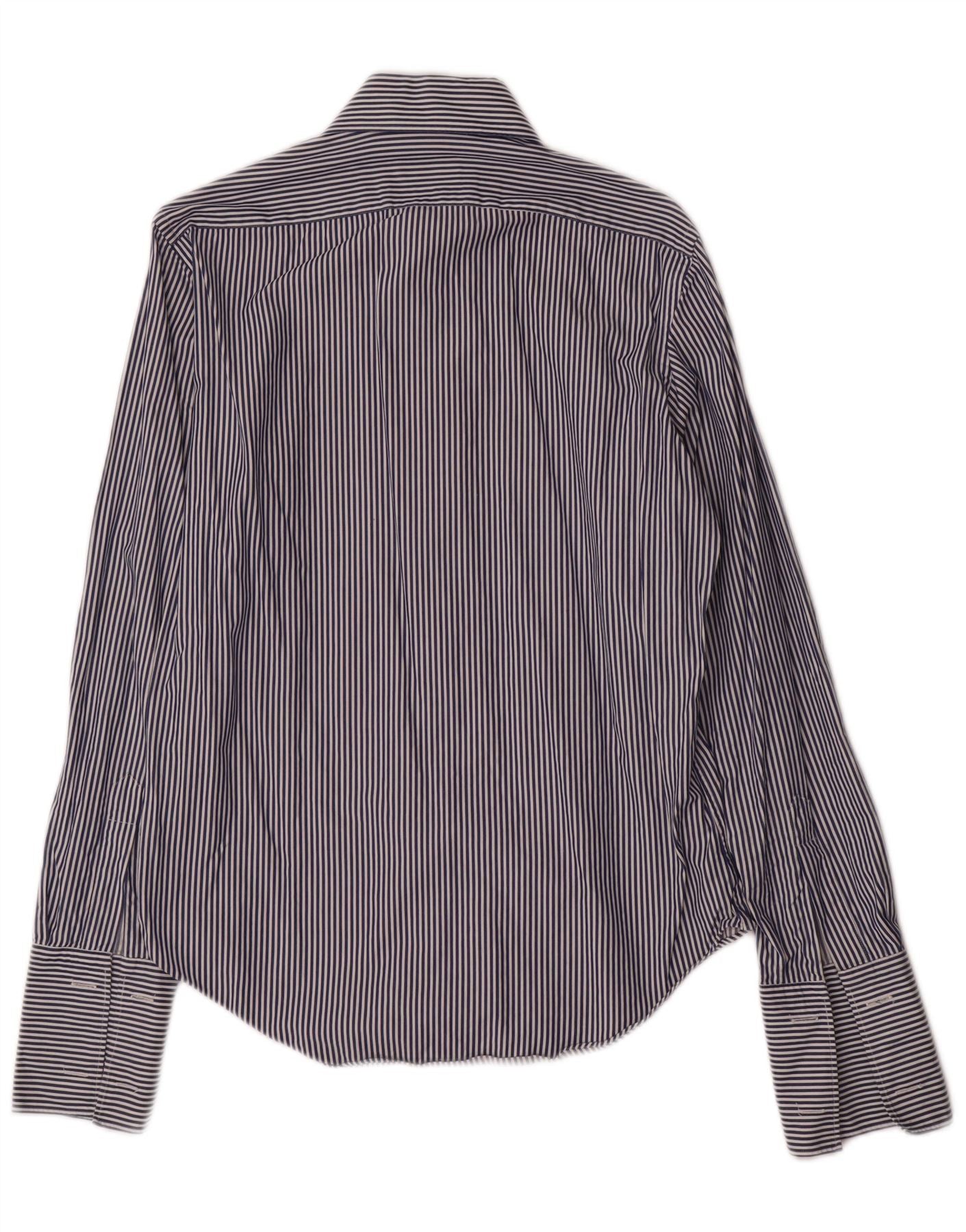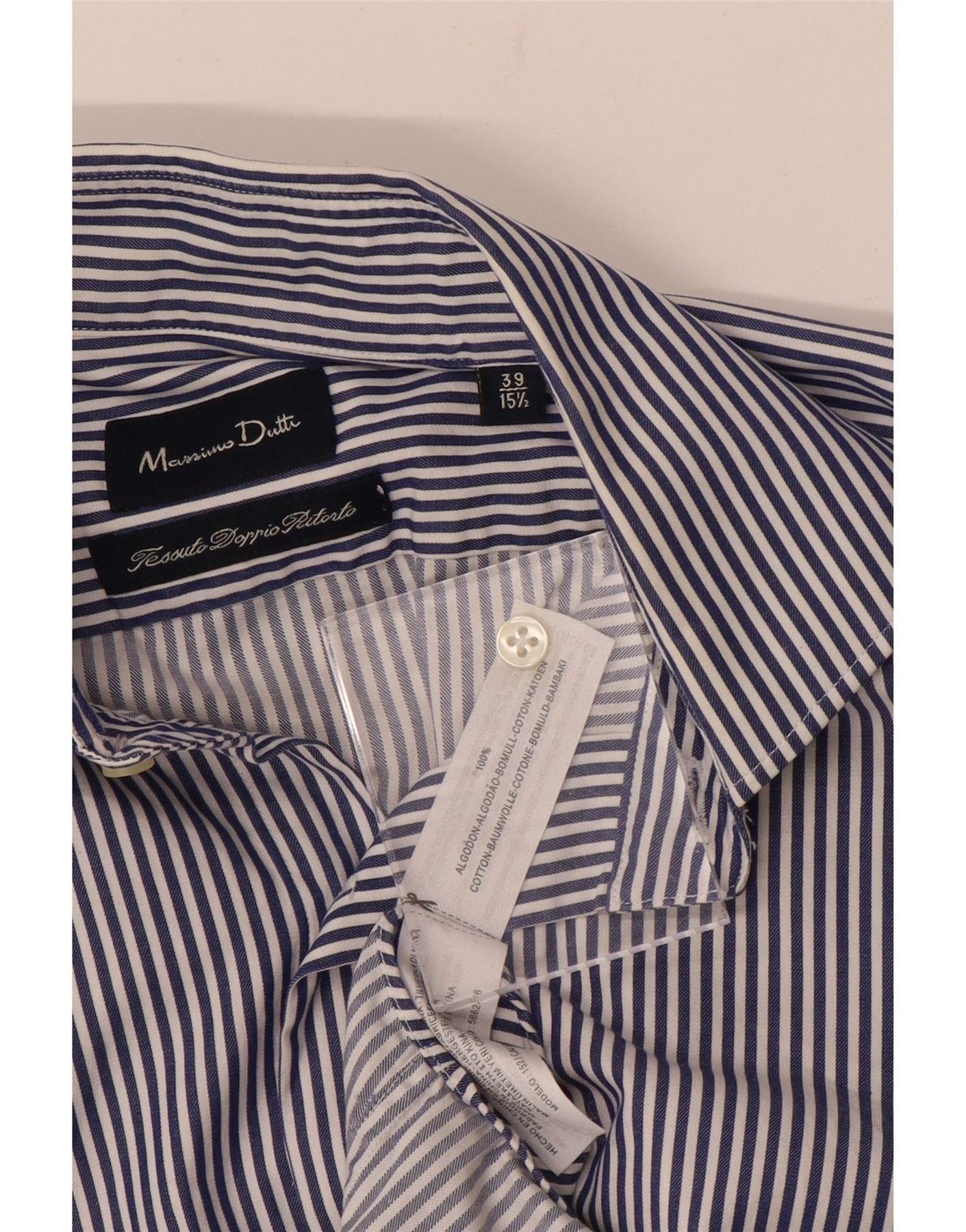 Massimo Dutti Mens Formal Shirt Size 39 15 1/2 Medium Navy Blue Striped