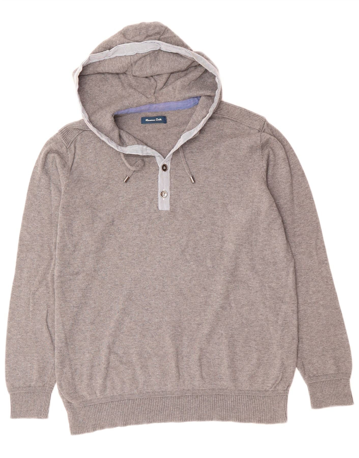 MASSIMO DUTTI Mens Hooded Jumper Sweater Large Grey Cotton